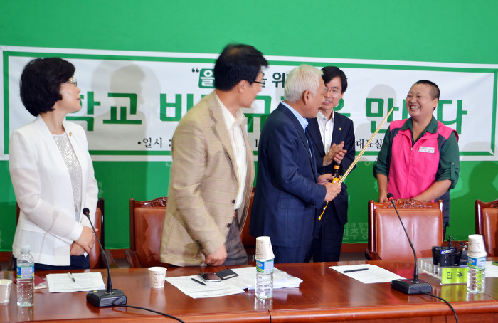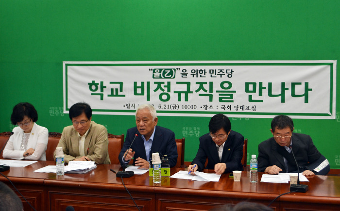 6월21일 민주당 최고위원회와 학교비정규직 노동조합 임원들이 만난 자리에서 김한길 대표는 민주당 유기홍의원이 대표발의한 ‘교육공무직법’의 통과를 위해 민주당은 최선을 다할 것을 약속하였습니다. 교육공무직법안의 핵심내용중 하나는 ‘교육감의 직접고용’이란 것은 두말할 필요가 없습니다.