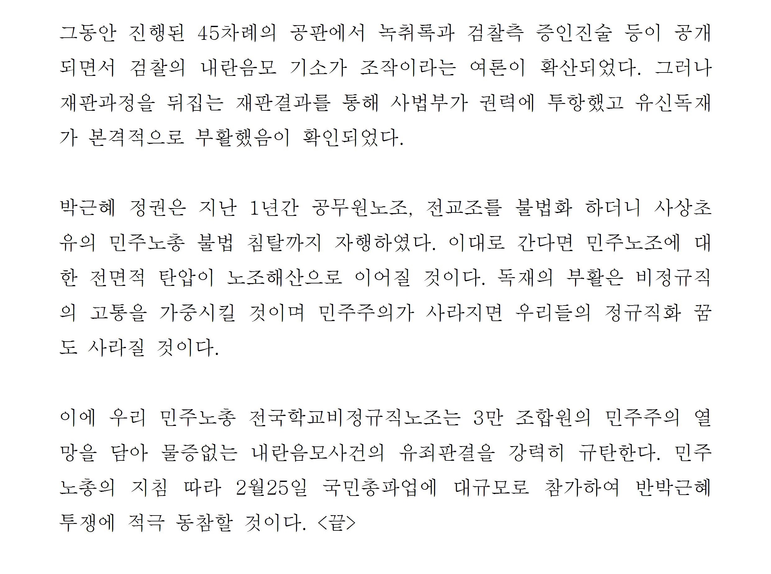 [0220]물증없는 내란음모사건, 유죄판결 규탄한다!
