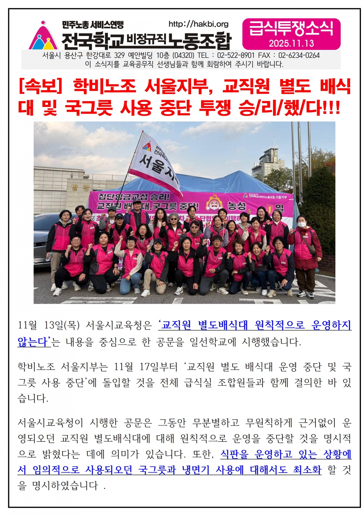 배식대 거부투쟁 승리 소식지