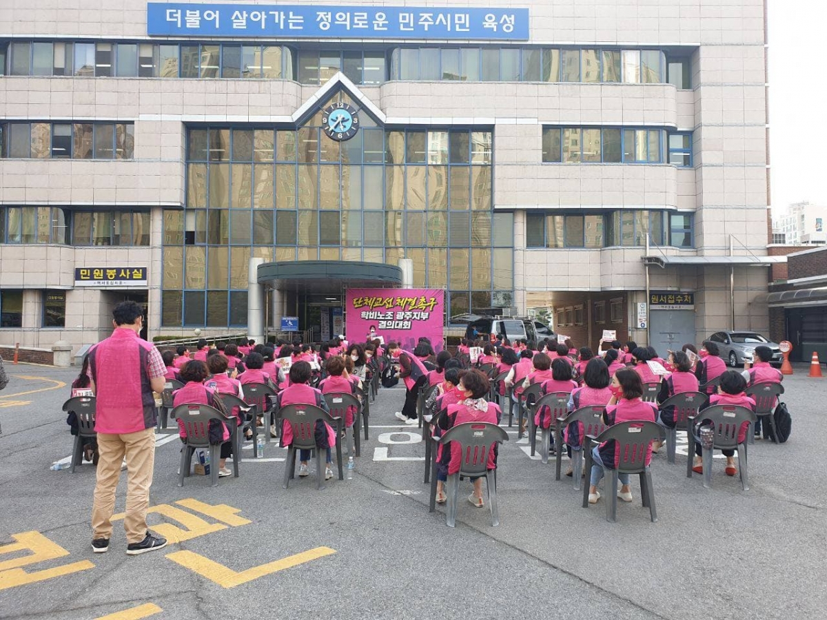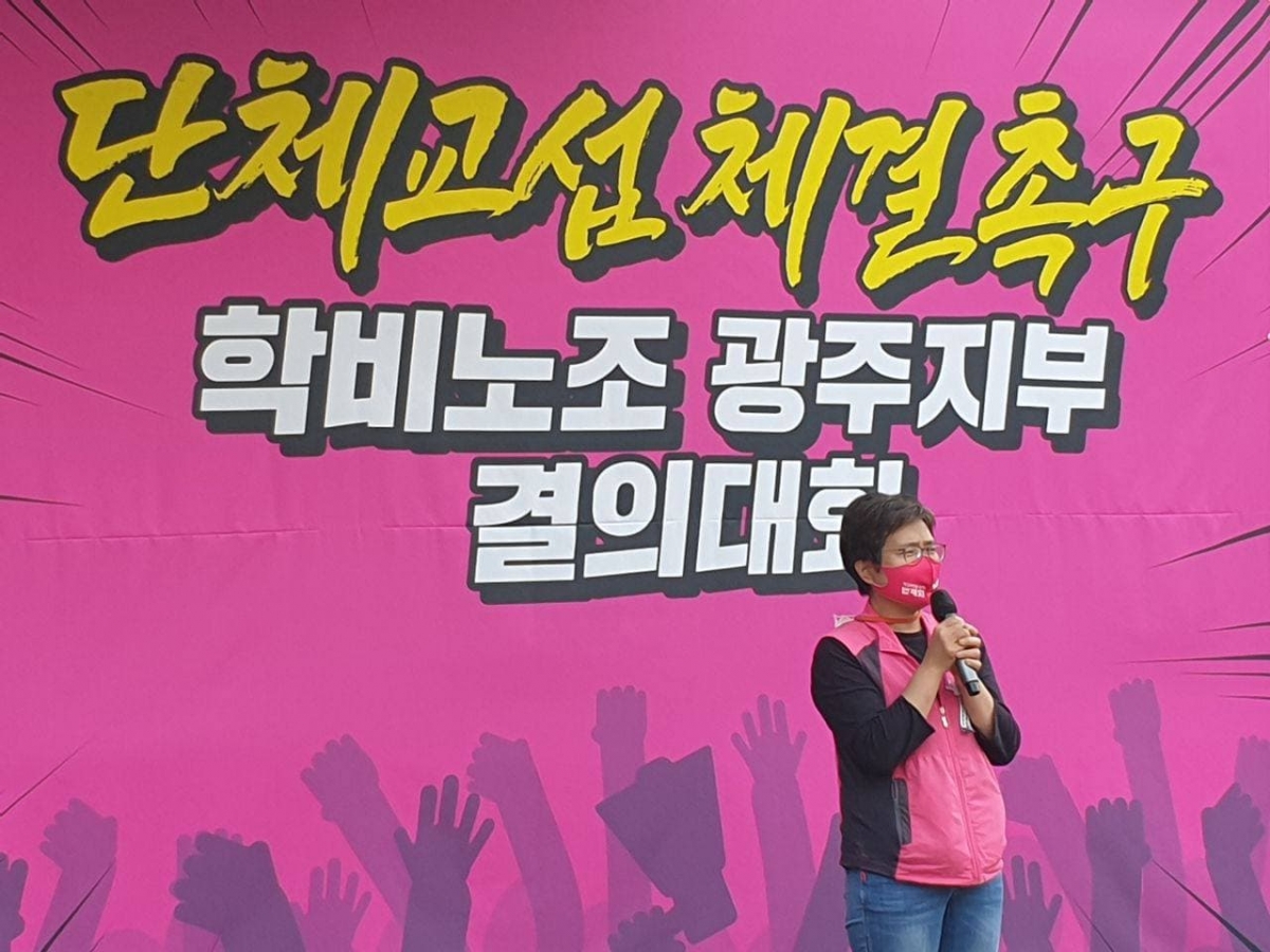 학비노조 광주지부는 6월 1일 광주교육청에서 "단체교섭 체결 촉구 학비노조 광주지부 결의대회'를 열고 지지부진한 단체교섭 체결을 촉구했다.