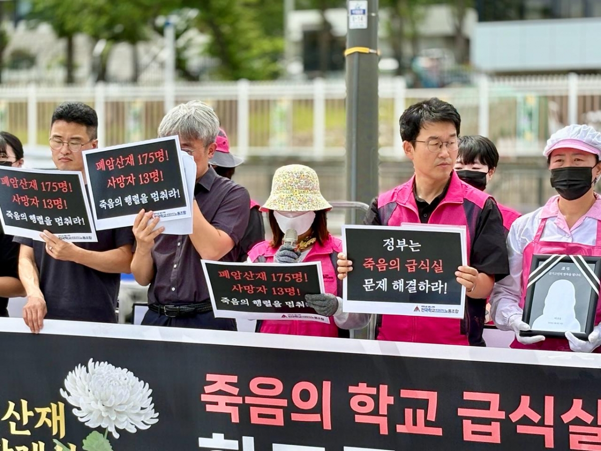전국학교비정규직노동조합 민태호 위원장은 “175명의 폐암 산재 판정 노동자와 이미 폐암으로 사망한 13명의 노동자에게 죽음을 방치하고, 안전을 지키지 못해 미안하다.’ 대통령이 사과해야 한다.”라며 학교급식법 전면 개정으로 윤석열과 어떤 차이가 있는지 이재명 대통령은 대책으로, 실적으로 응답해야 한다.”라고 새 정부에게 요구했다.