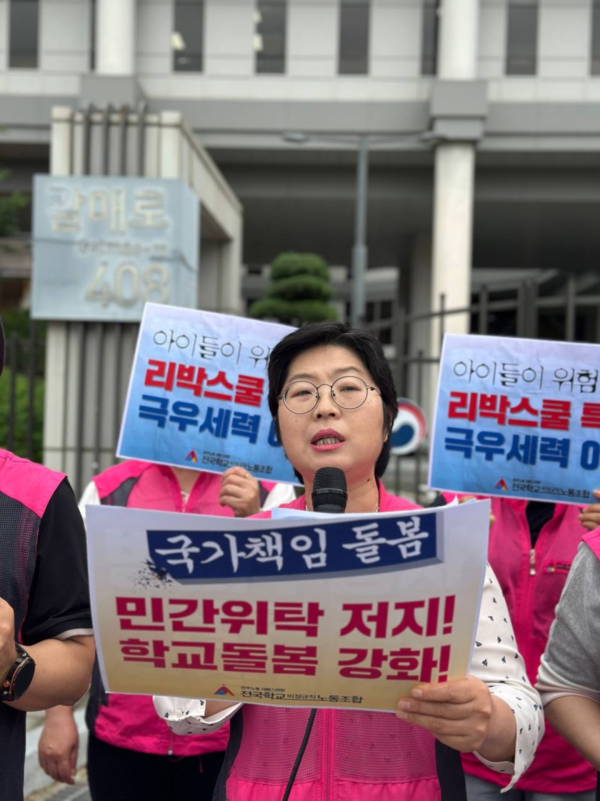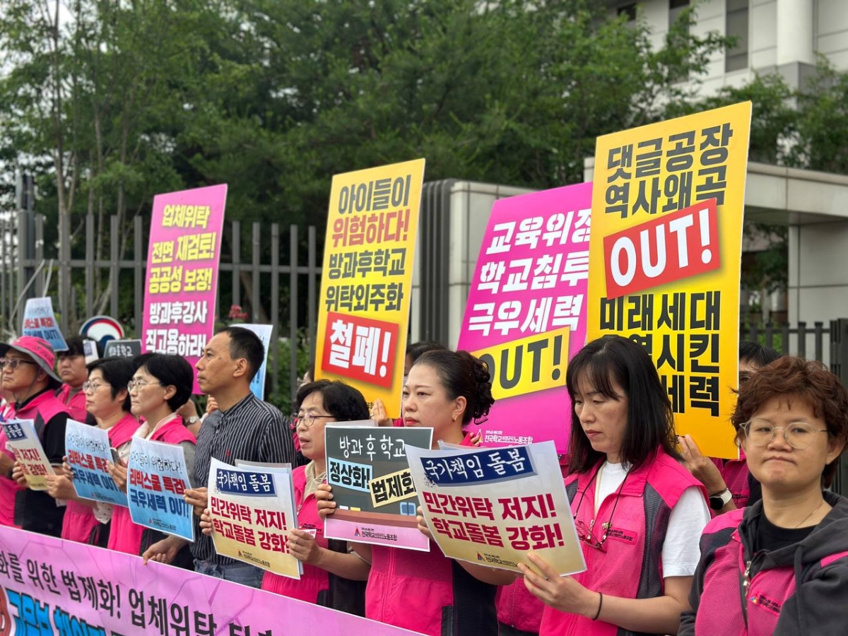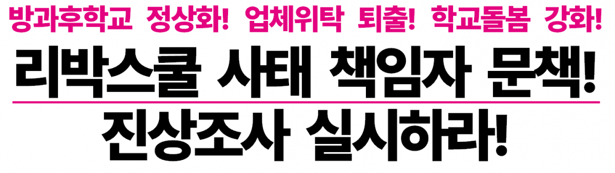 방과후학교 정상화! 업체위탁 퇴출! 학교돌봄 강화! 리박스쿨 사태 책임자 문책! 진상조사 실시하라!