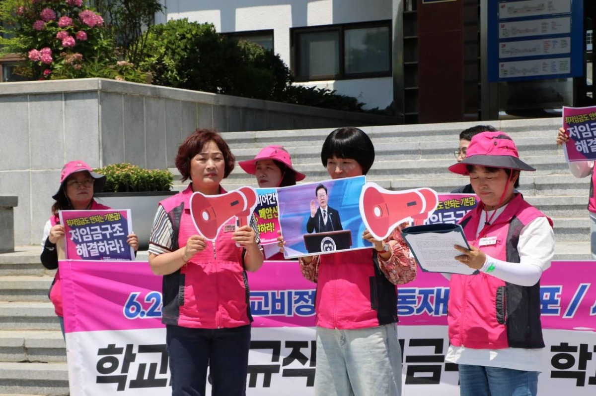 새 정부는 학교부터 비정규직 저임금 구조 개선하고 임금차별 철폐하라!