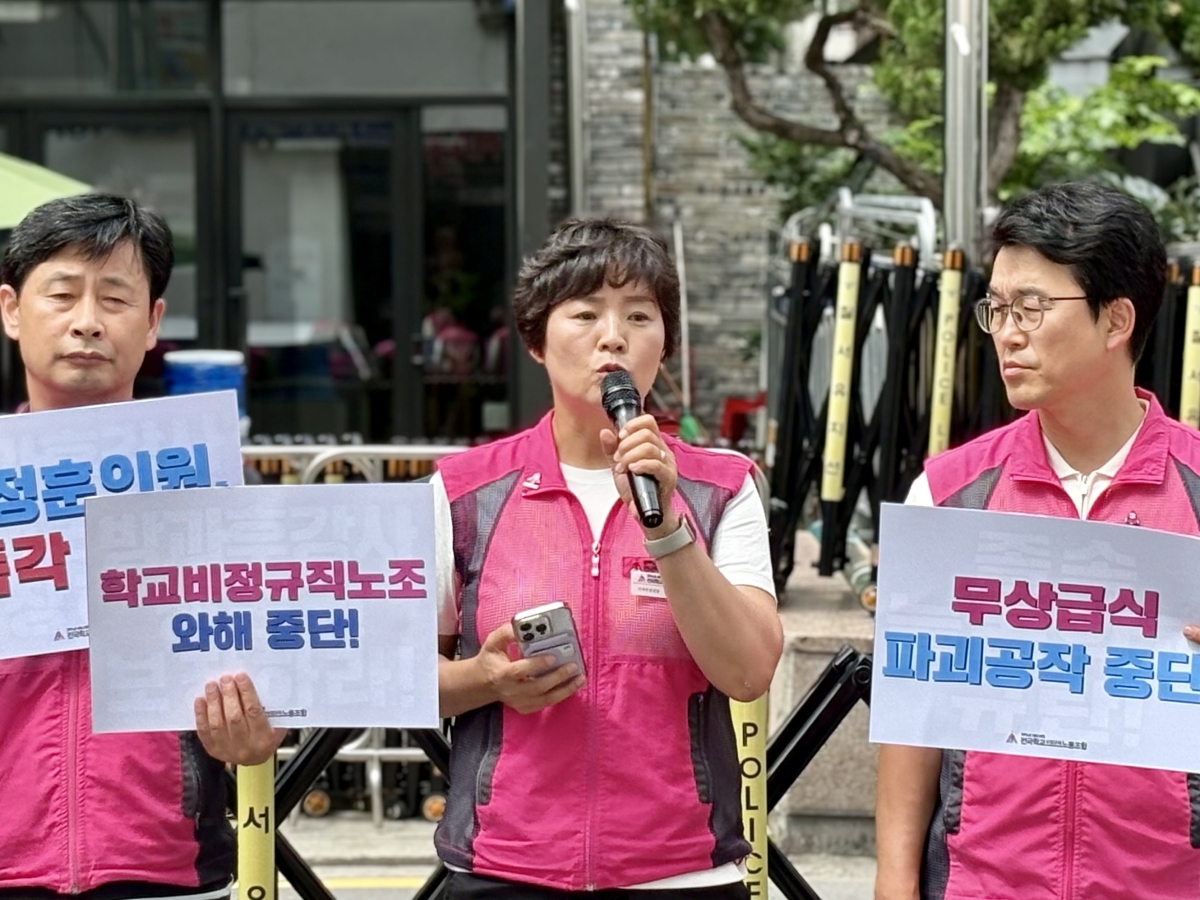 전국학교비정규직노동조합은 기자회견문에서 “학교 급식실의 필수공익사업장 지정은 그 자체로 헌법상 권리인 노동자의 단체행동권을 제한하는 위헌적인 발상”이라며 “불법 불의한 공작 행위를 뿌리 뽑고, 공교육과 민주주의를 지키기 위해 끝까지 투쟁할 것”이란 결의를 다졌다.