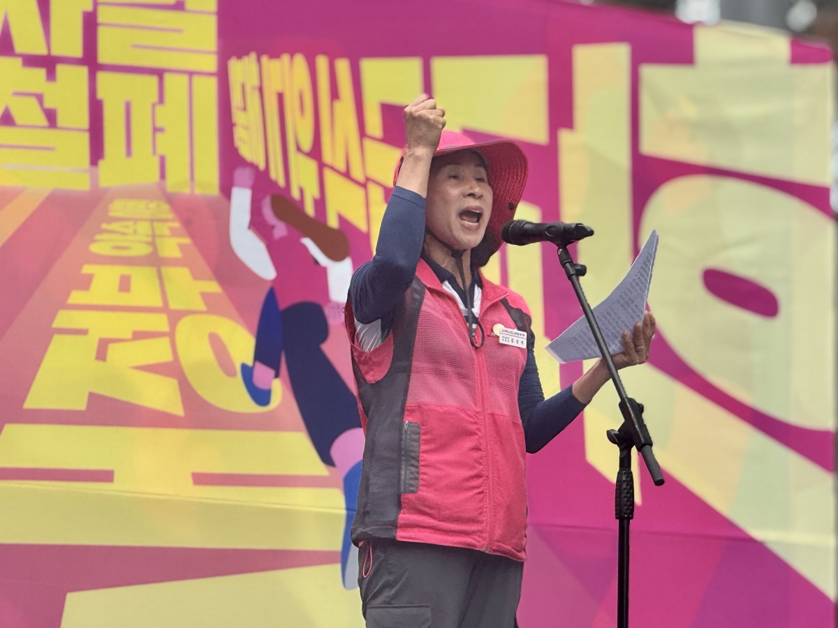학비노조 대전지부 배지현 분회장은 “아파도 쉴 수 없는 현실, 최저임금도 못 받는 현실”에 대해 토로하며, 우리 아이들도 언젠가는 노동자가 되기에, 반드시 이 환경을 바꿀 것”이라고 힘차게 결의했다. 미화분과 김선미 전국분과장은 “고령의 여성비정규직노동자가 대다수인 미화 직종은 단시간 저임금 노동을 강요받고 있다”라며 최저임금 인상 요구와 저임금구조 개편을 요구했다. 또한“우리의 힘으로 약속을 이행시키자!”라고 힘주어 말했다.
