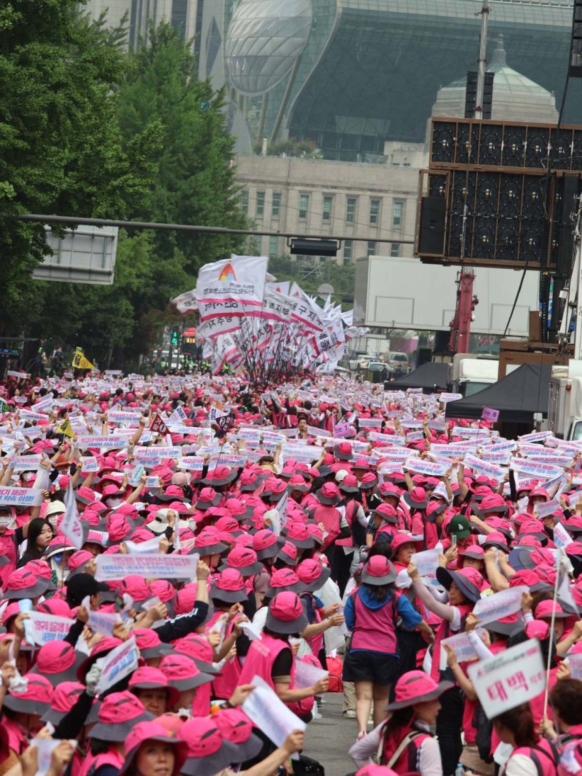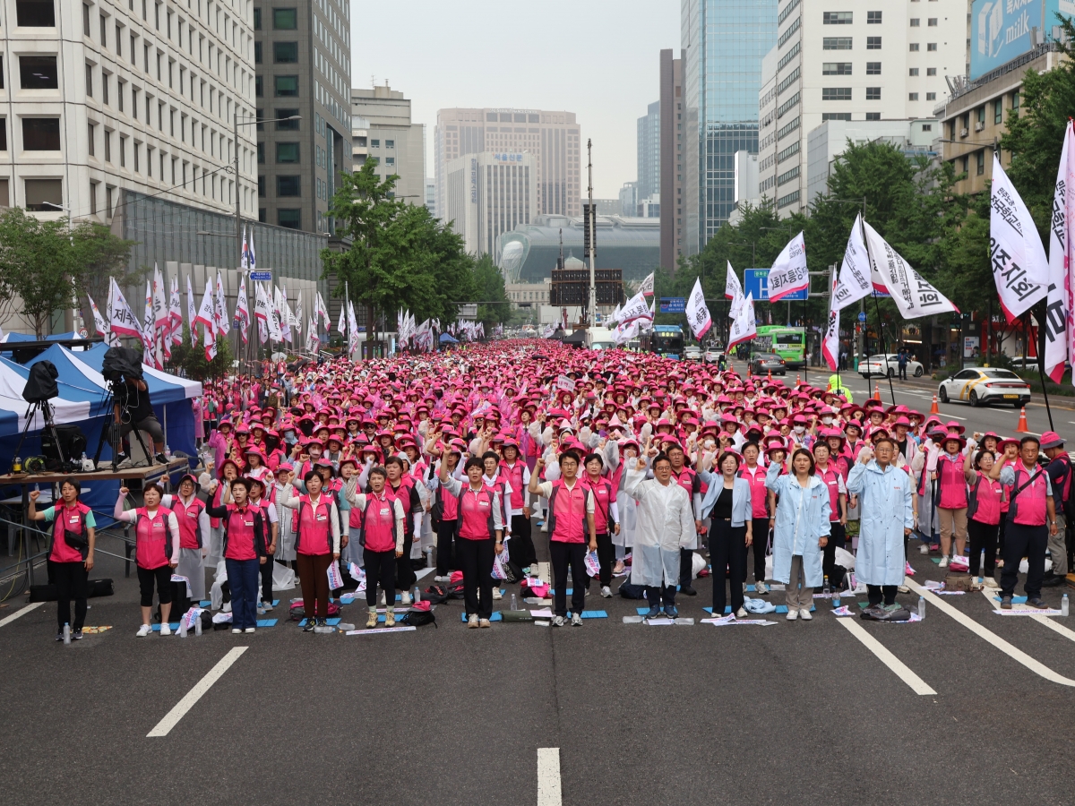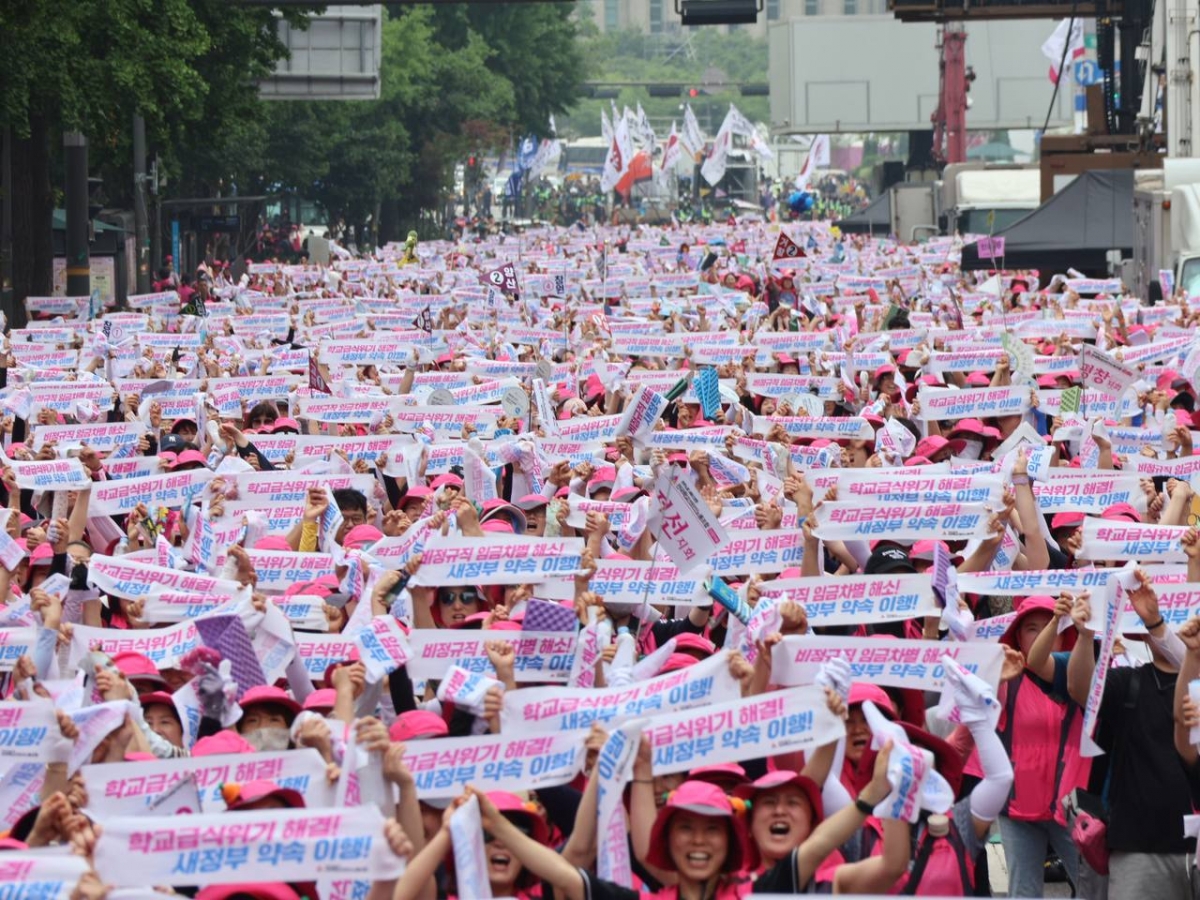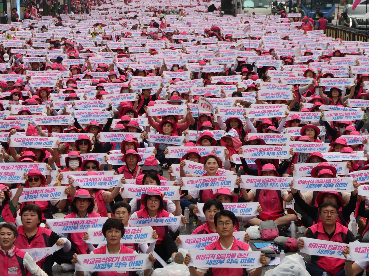전국학교비정규직노동조합(이하 학비노조)은 지난 6월 28일 숭례문 인근에서 학교비정규직 차별철폐와 학교급식 위기 해결, 새 정부의 약속 이행을 촉구하는 '전국학교비정규직노동자대회'를 개최했다.