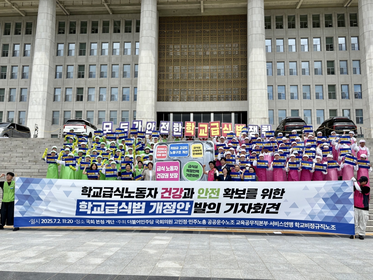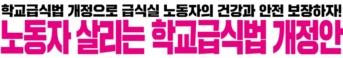 '학교급식법 개정으로 급식실 노동자의 건강과 안전 보장하자!' 노동자 살리는 학교급식법 개정안