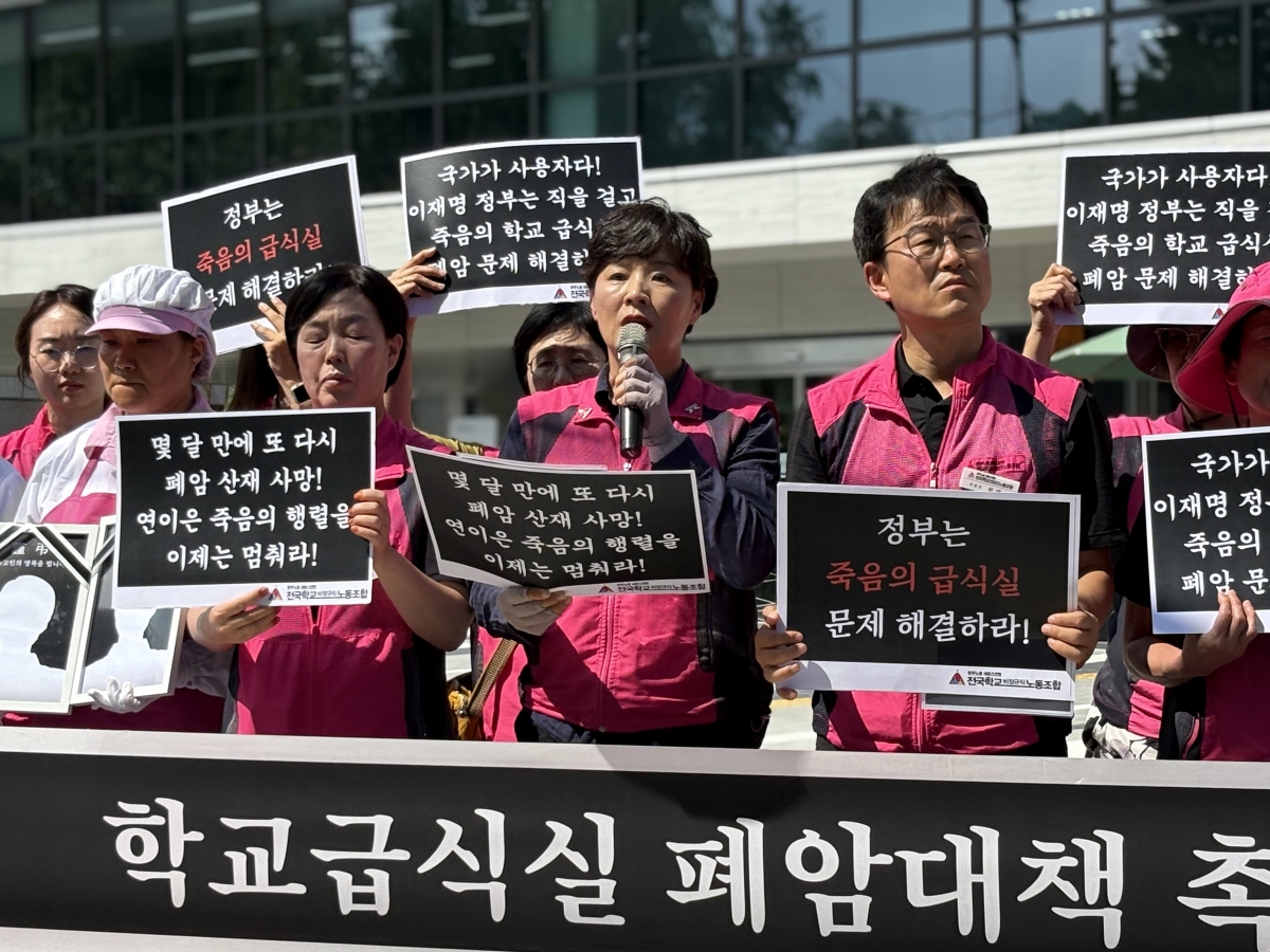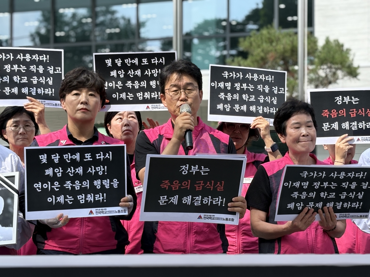 이에 반복되는 죽음을 막고자 학교 급식실 폐암 산재 문제의 시급한 해결을 이재명 정부에 촉구하기 위해 기자회견을 개최했다