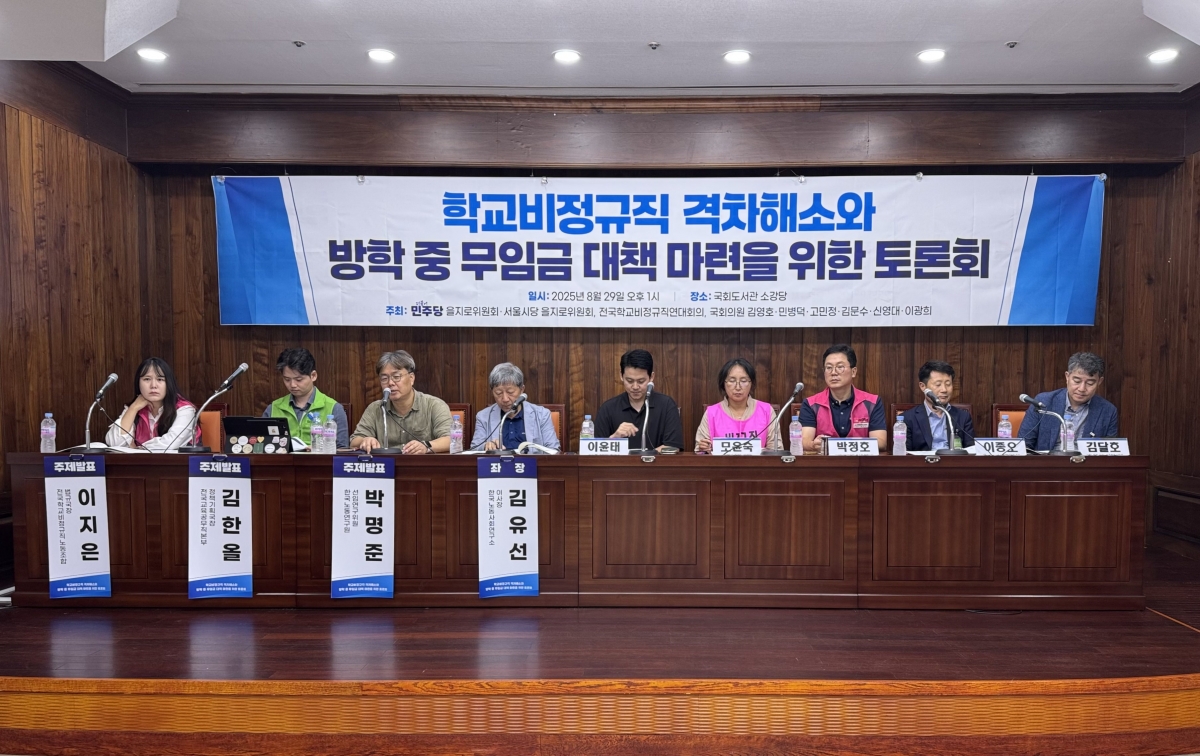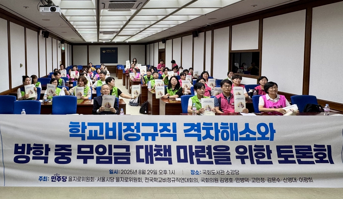 전국학교비정규직연대회의는 지난 829() 국회 도서관에서 학교비정규직 격차해소와 방학 중 무임금 대책마련을 위한 토론회를 개최했다. 토론회는 민주당 을지로위원회, 김영호, 민병덕, 고민정, 김문수, 신영대, 이광희 국회의원과 전국학교비정규직연대회의 공동주최로 진행됐다.