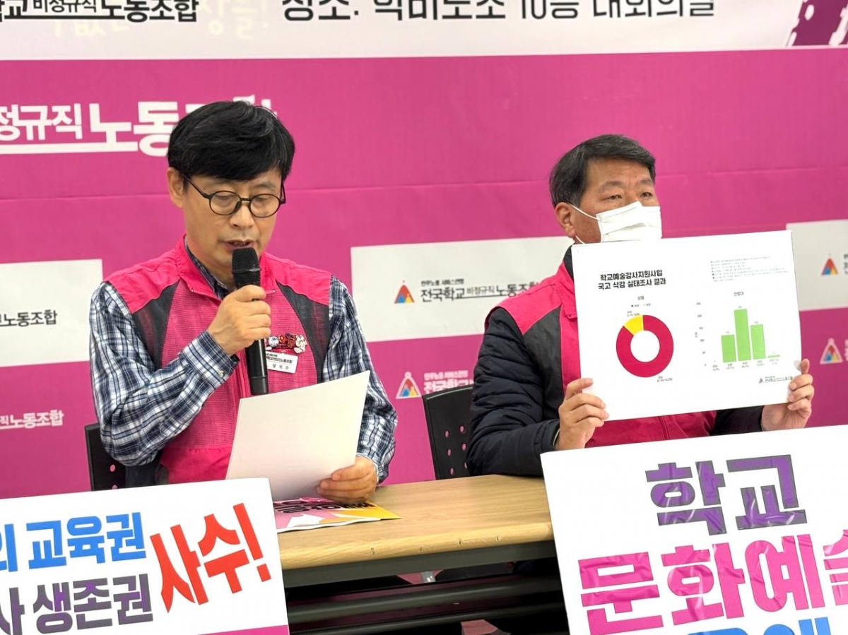 전국학교비정규직노동조합은 오늘(30) 11시 학비노조 10층 대회의실에서 윤석열 정부가 짓밟은 예술강사 예산, 이재명 정부도 외면학교예술강사지원사업 국고 삭감 실태조사 결과 발표 기자회견을 진행했다.