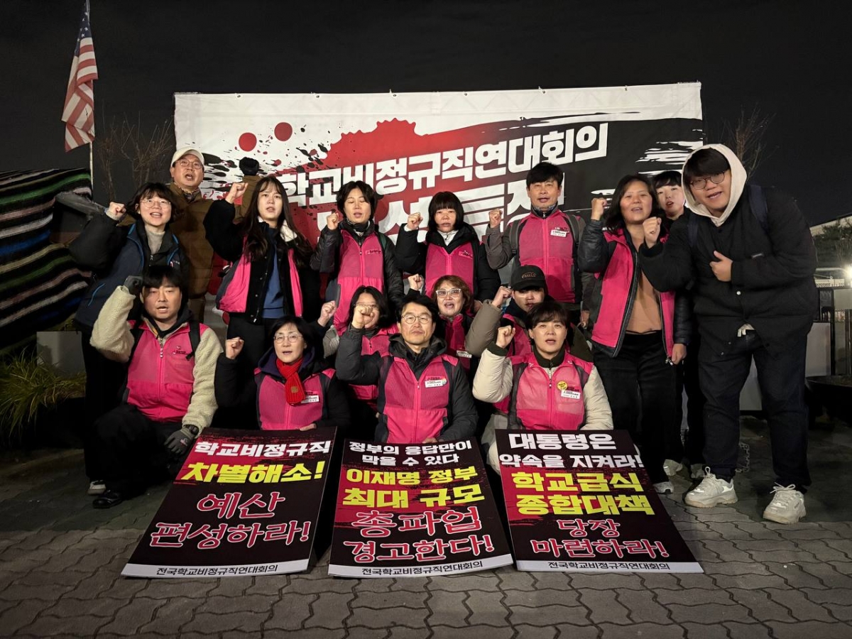 지난 51, 당시 이재명 대통령 후보가 1호 정책협약으로 내세운 학교급식법 개정, 학교급식종합대책 마련, 학교비정규직 저임금 문제 및 방학 중 무임금 문제 해결을 위한 노력을 약속했으나 이행하지 않고 있다. 연대회의는 이를 규탄하며 국회의 역할과 이재명 정부의 결단을 촉구하기 위해 농성투쟁에 돌입했다.