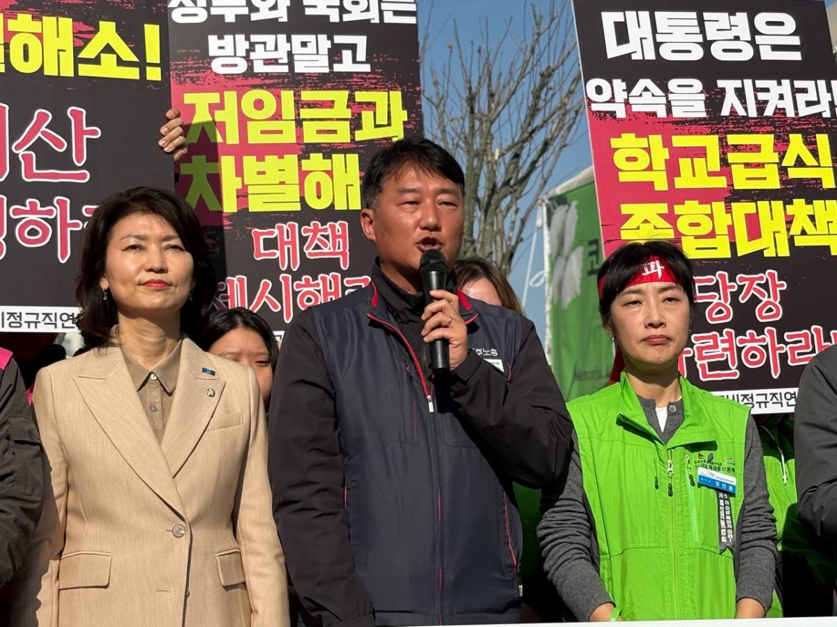 학비노조 민태호 위원장은 기자회견문을 통해 학교급식법 개정 교육공무직 법제화 명절휴가비 동일 기준 적용 방학 중 생계대책 마련 학교비정규직 저임금 구조 해결을 위한 예산 편성을 촉구했다. 더불어우리의 요구는 특혜를 달라는 것이 아니라, 최소한의 평등이라며 우리의 노동을 존중받고 싶은 간절함이라고 호소했다.