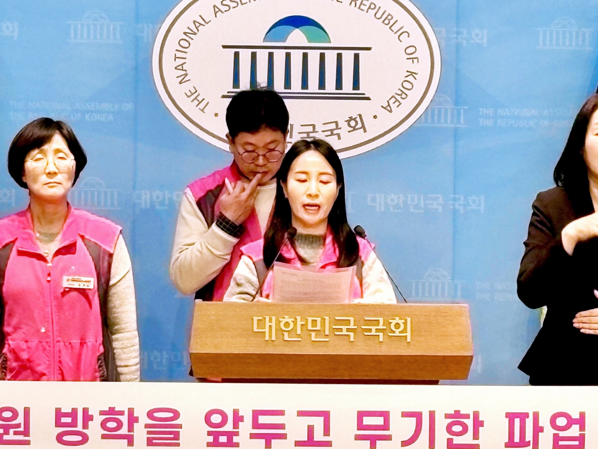 전국학교비정규직노동조합은 오늘(30) 국회 소통관에서 유치원방과후전담사 방중 독박 운영 해결 촉구 국회 기자회견을 진행했다.