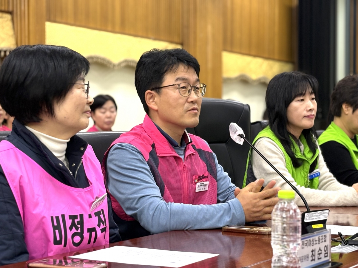 전국학교비정규직노동조합 민태호 위원장은 여성노동자의 사회적 지위를 말하며 “교섭 대상인 학교비정규직의 문제만으로 생각하지 말고, 하나의 사회구성원으로 살아가는 여성노동자의 가치를 평가하는 문제라고 생각한다”라며 올해 교섭에 대한 바람을 전했다.