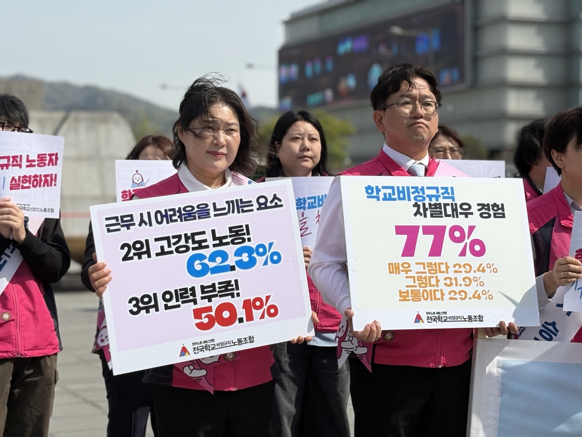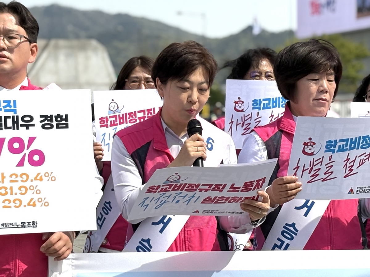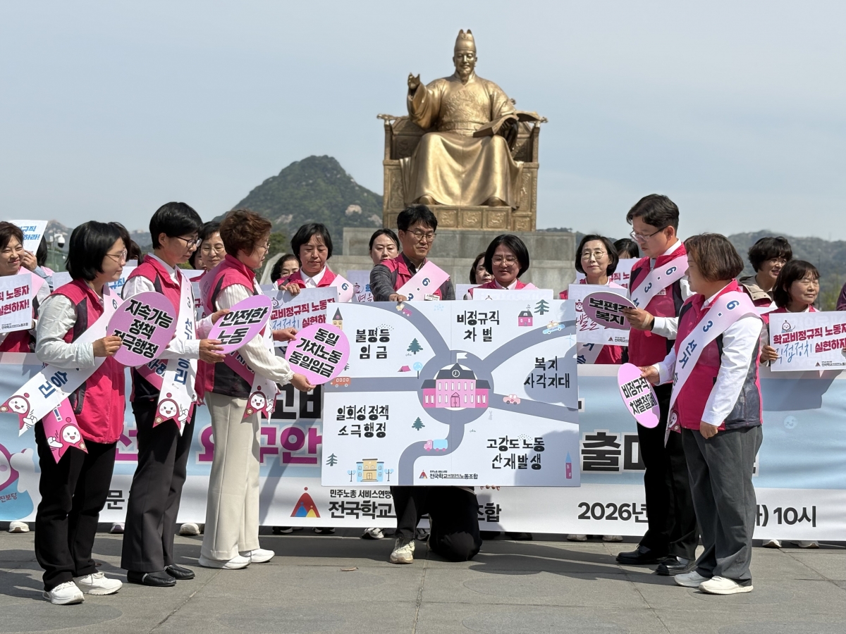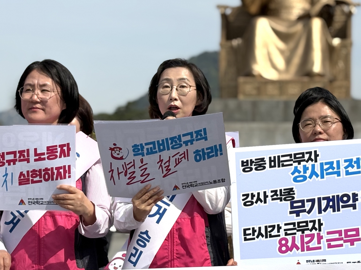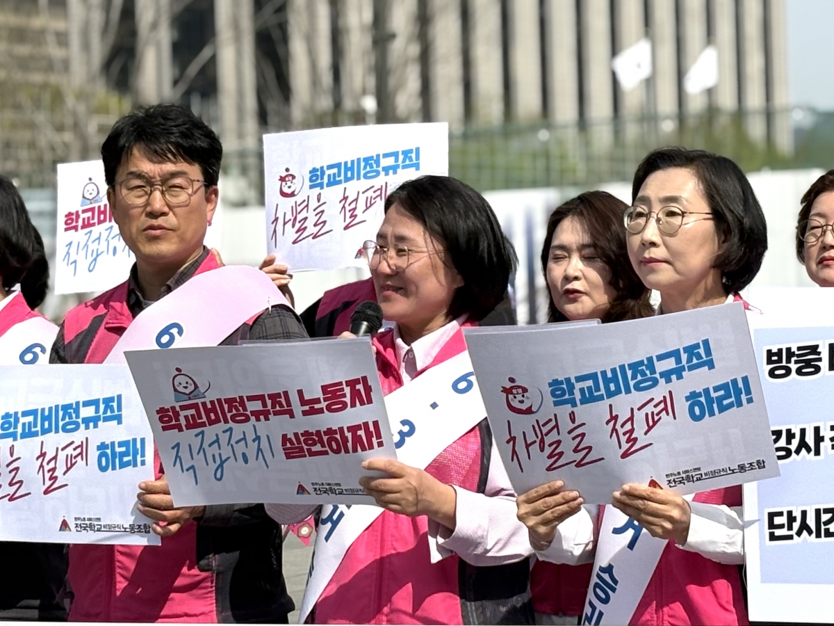 전국학교비정규직노동조합은 오늘(14일) 광화문 세종대왕 동상 앞에서 “학교비정규직 노동자 6.3선거 요구안 발표 및 47명 출마 선언 기자회견”을 진행했다.
