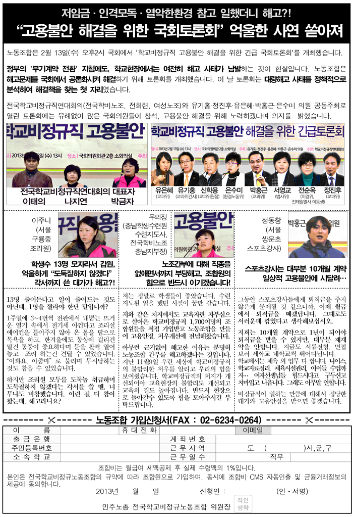 학비노동자22호 - 박근혜 대통령 대량해고 해결하라! 국회기자회견, 충남교섭공고