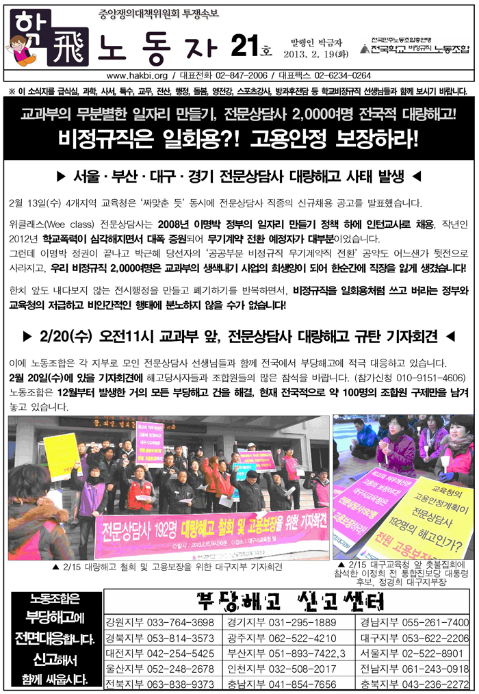 학비노동자21호 - 전문상담사 대량해고 규탄! / 고용불안해결 국회토론회