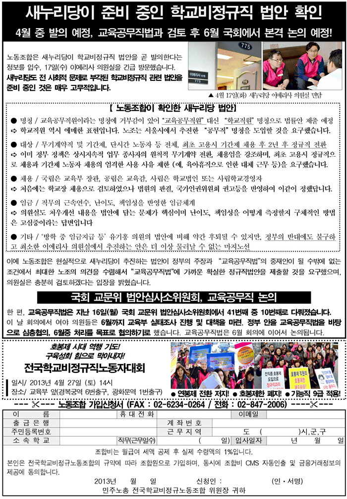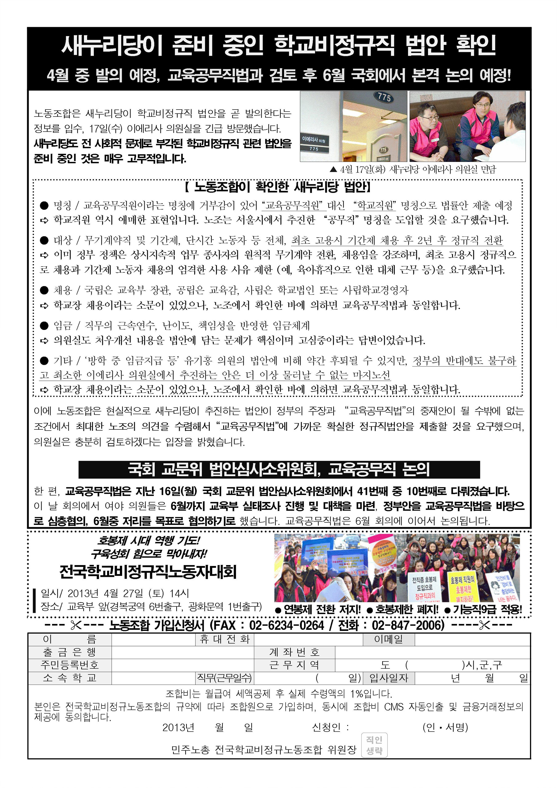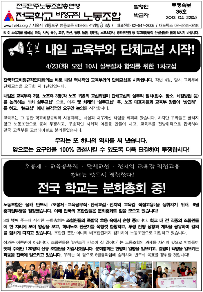 투쟁속보35호-교육부교섭시작,분회총회로 거침없이 전진 중,새누리당 법안의 문제점, 구육성회 대회 개최