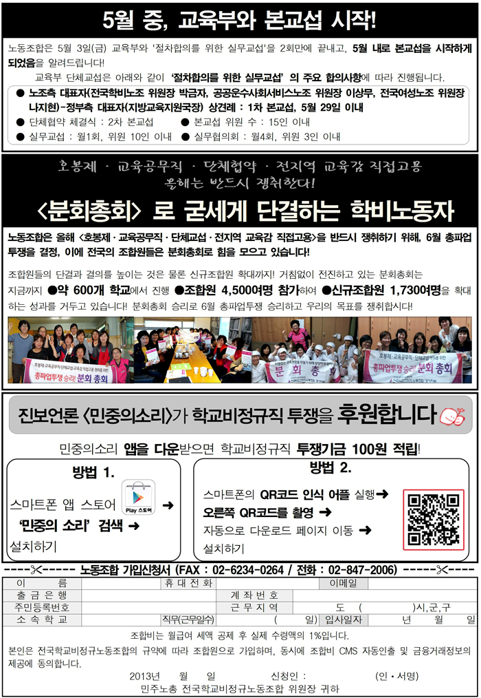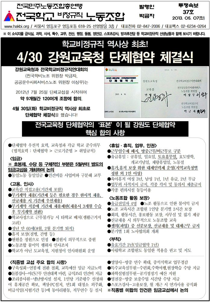 투쟁속보37호-강원단협 핵심내용, 매일 기적을 만드는 분회총회, 학비투쟁 후원 캠페인