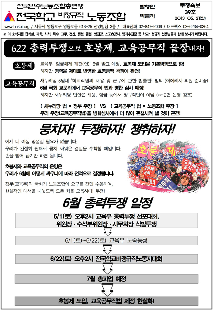 투쟁속보39호-6월총력투쟁,투쟁기금준비,전국 단체교섭 현황