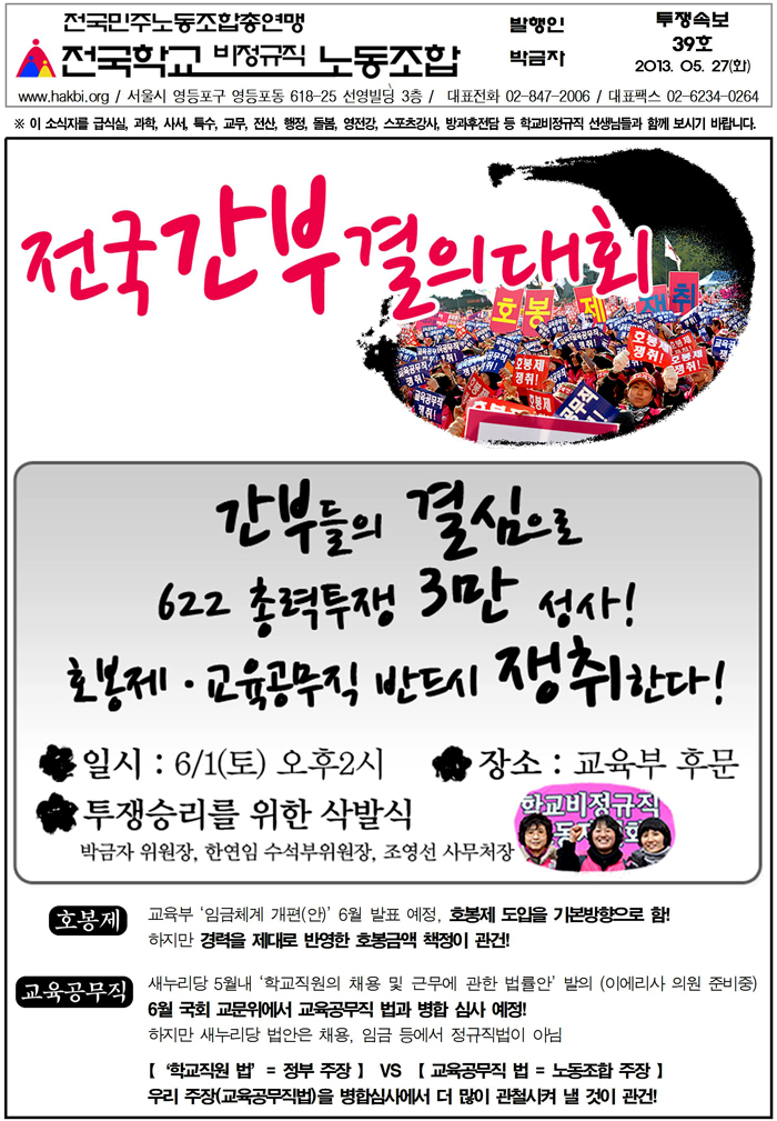 투쟁속보40호-61간부대회,경기 장기근무가산금 인상, 직종대표자회의