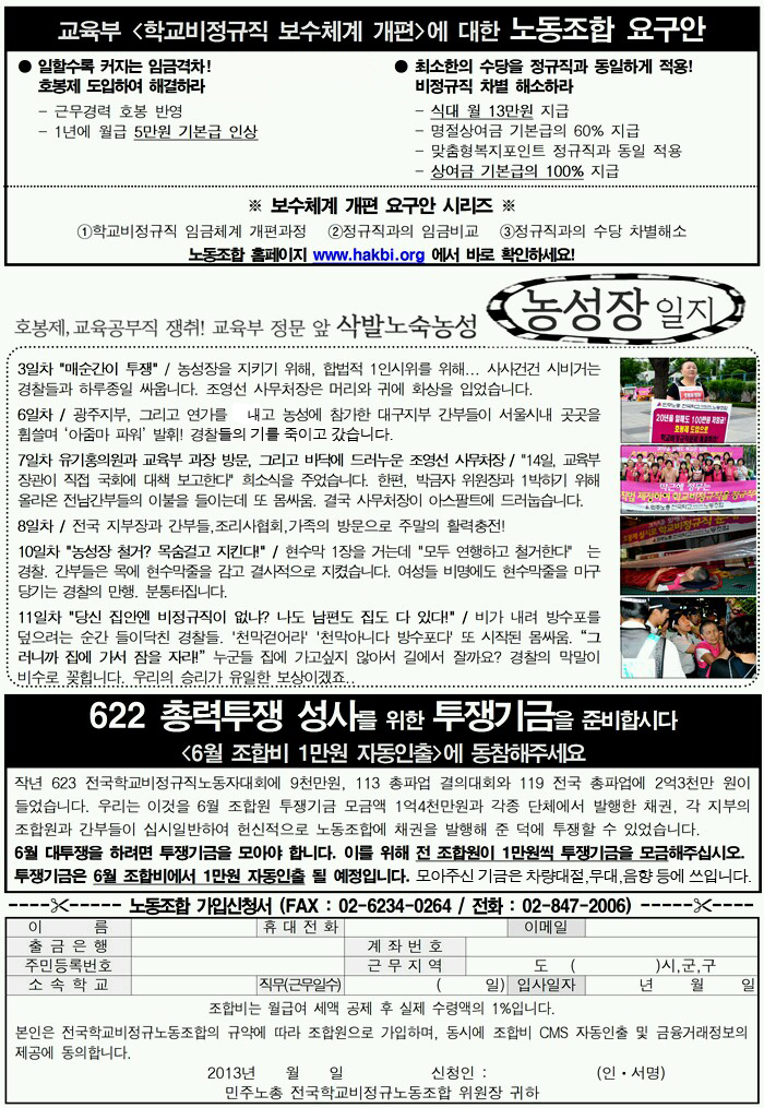 투쟁속보42호-교육부장관 14일 대책발표,622,임금체계요구안,농성장일지,투쟁기금모금