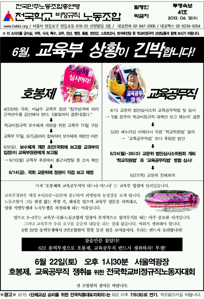 투쟁속보41호-6/1간부대회 삭발식, 노숙농성 돌입