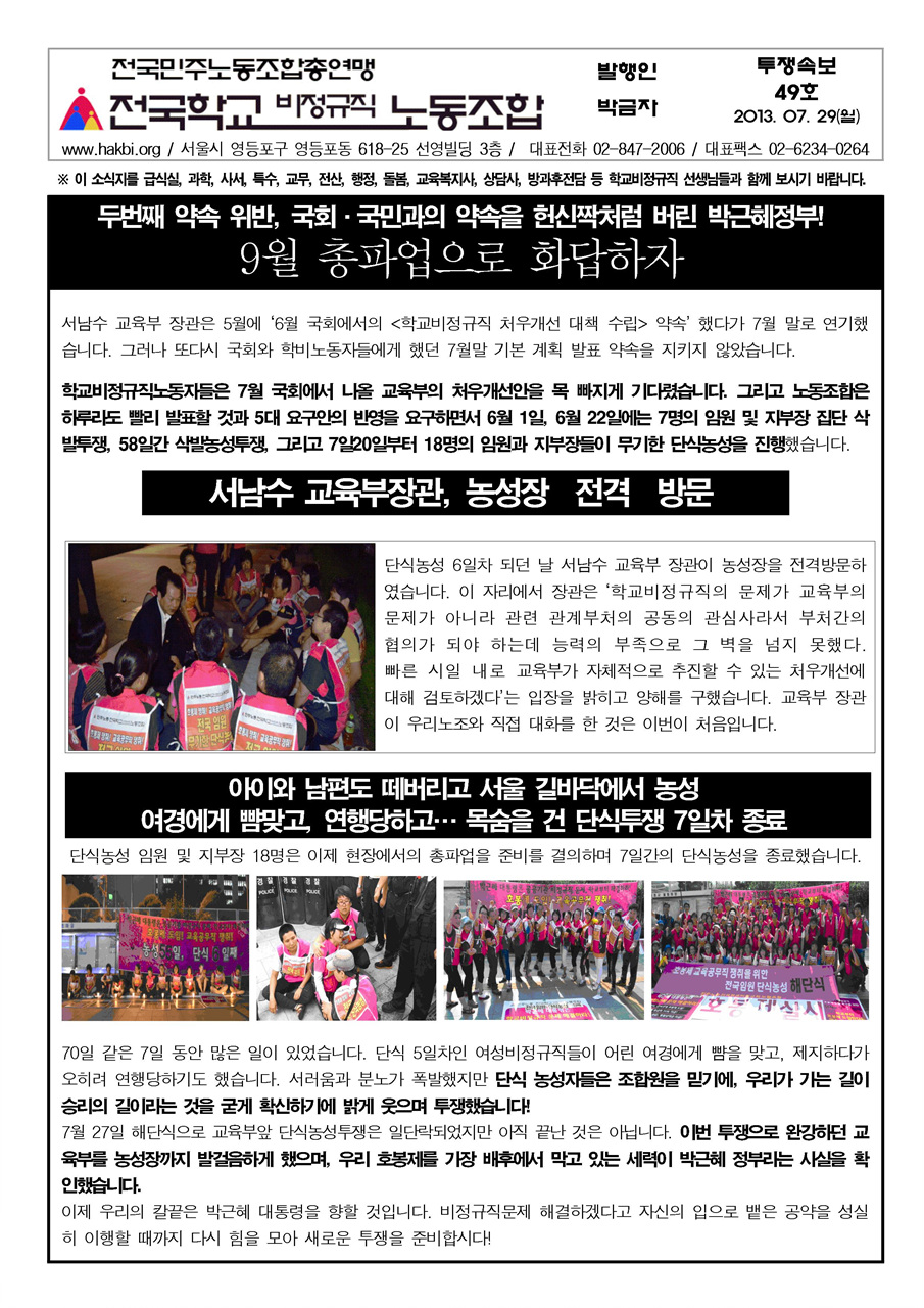 투쟁속보-49호 "9월 총파업으로 화답하자!"