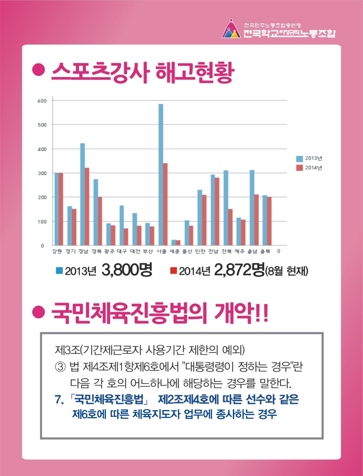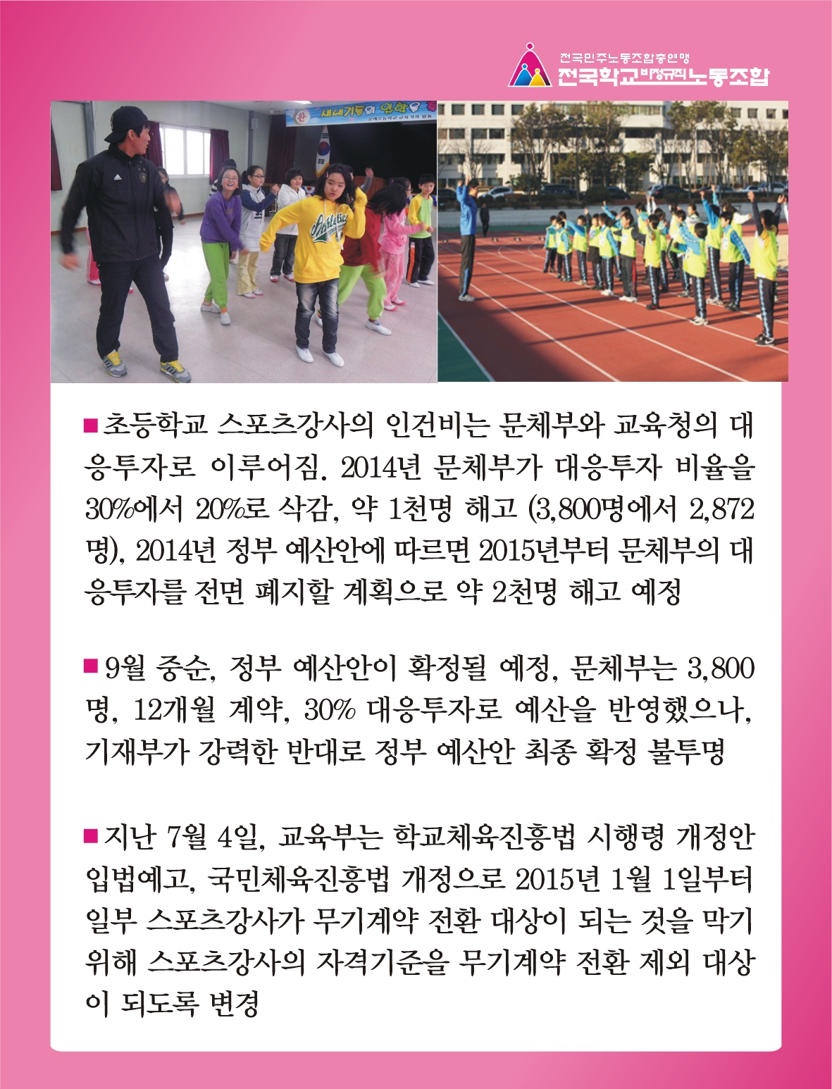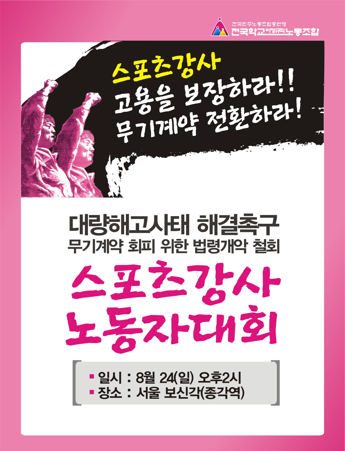 스포츠강사 노동자대회 보고 / 세월호 특별법제정 릴레이 단식 / 을지로위원회 입법결의대회 8월 26일 모바일소식지입니다.