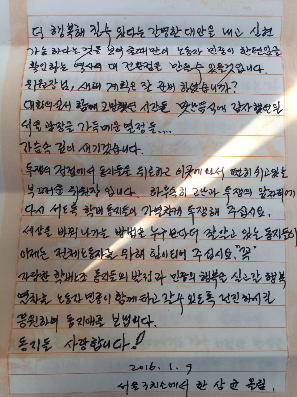 감옥으로의 편지 - 한상균 위원장의 편지글
