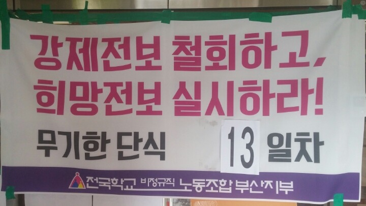 <부산지부> 무기한 단식농성 13일차 - 강제전보 철회하라!!