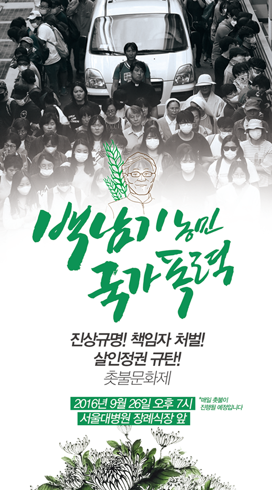 백남기 농민 국가폭력 진상규명! 책임자 처벌! 살인정권 규탄!