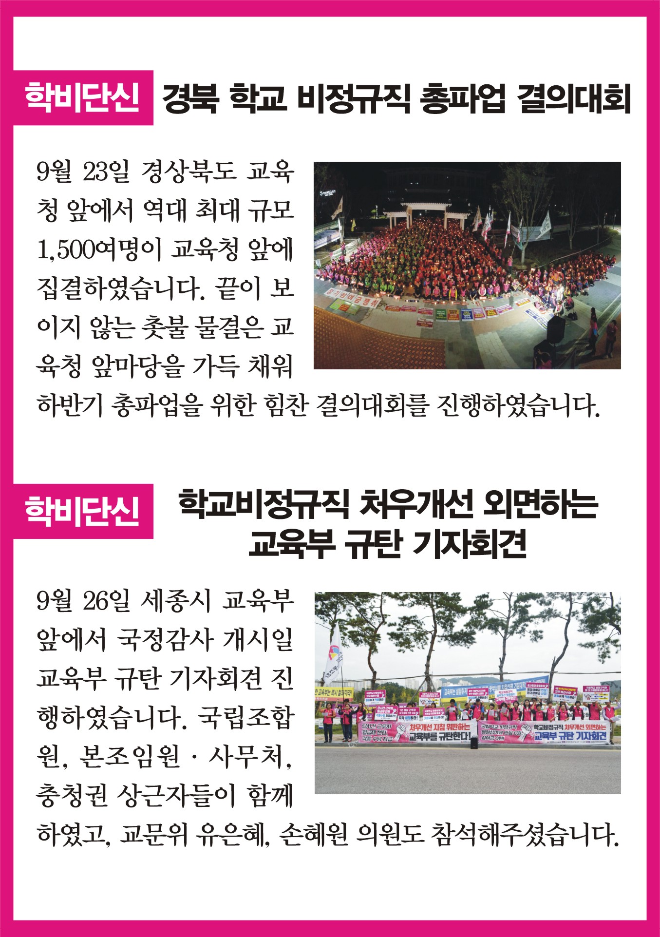 언론에 비친 학비노조