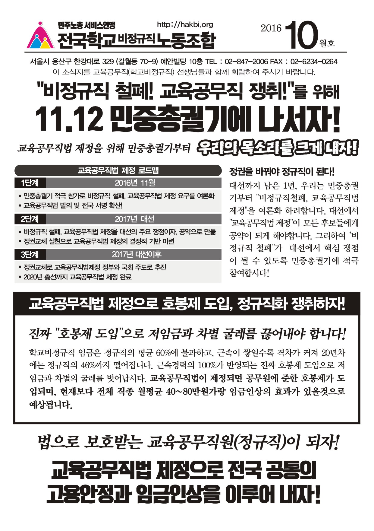 학비노동자 10호 [싸워야 할때! 교육공무직법 쟁취하자! 민중총궐기 참여하자!]