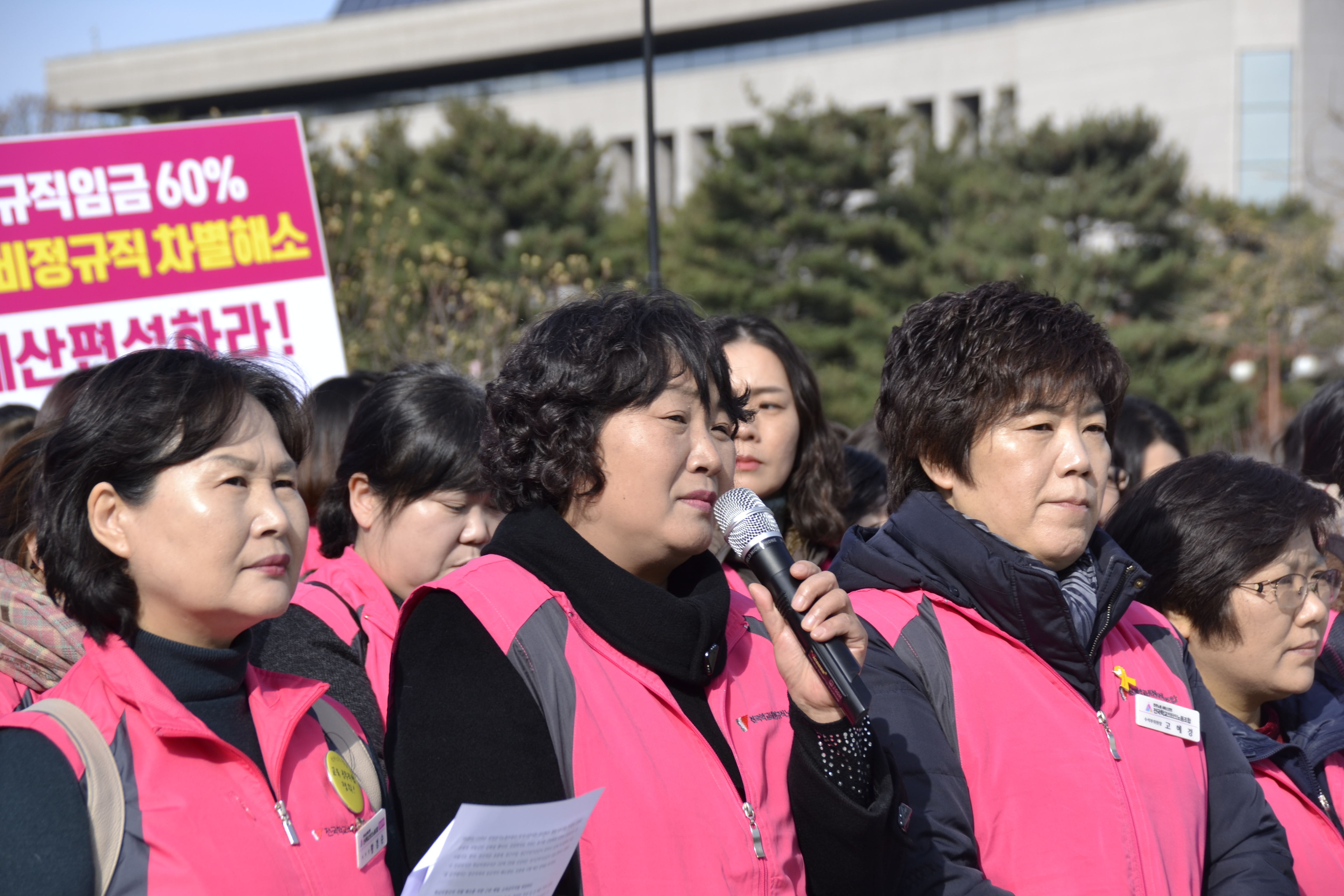 11월 23일 1시30분에 국회앞에서 200여명의 학교비정규직 조합원들과 학교비정규직 차별해소를 위한