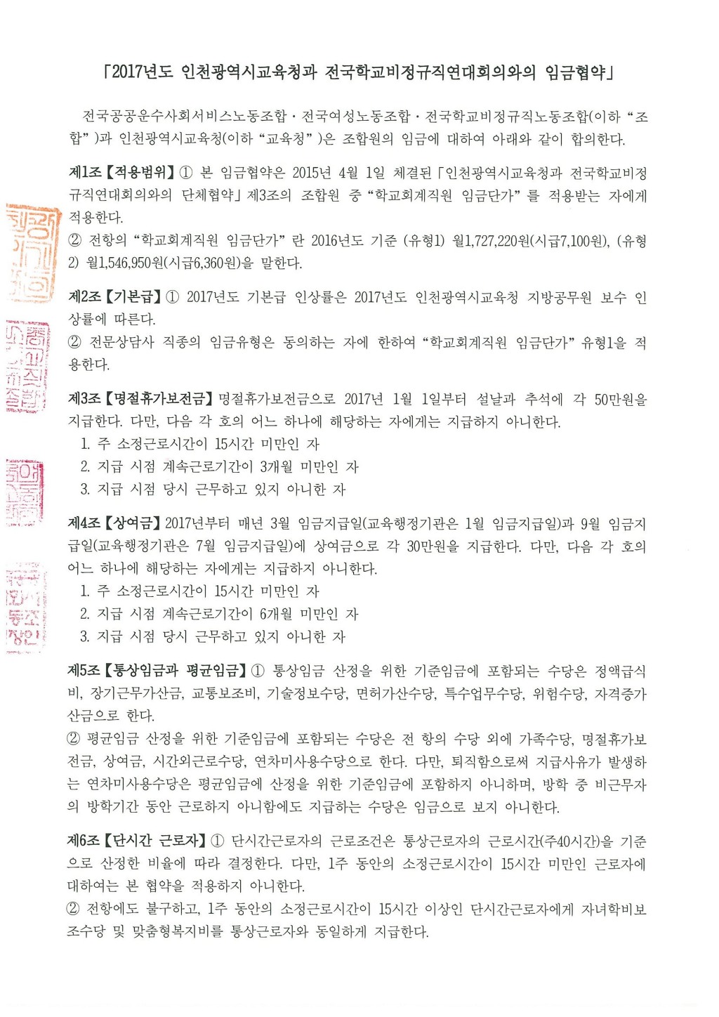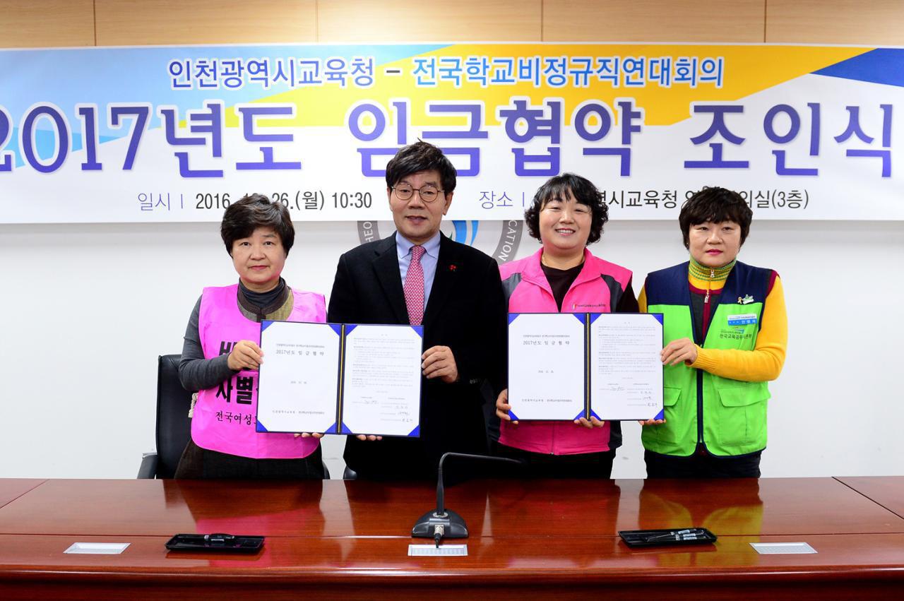 교섭대표로 참가하여 이청연 교육감과 2017년 임금협약 조인식 가졌습니다!!
