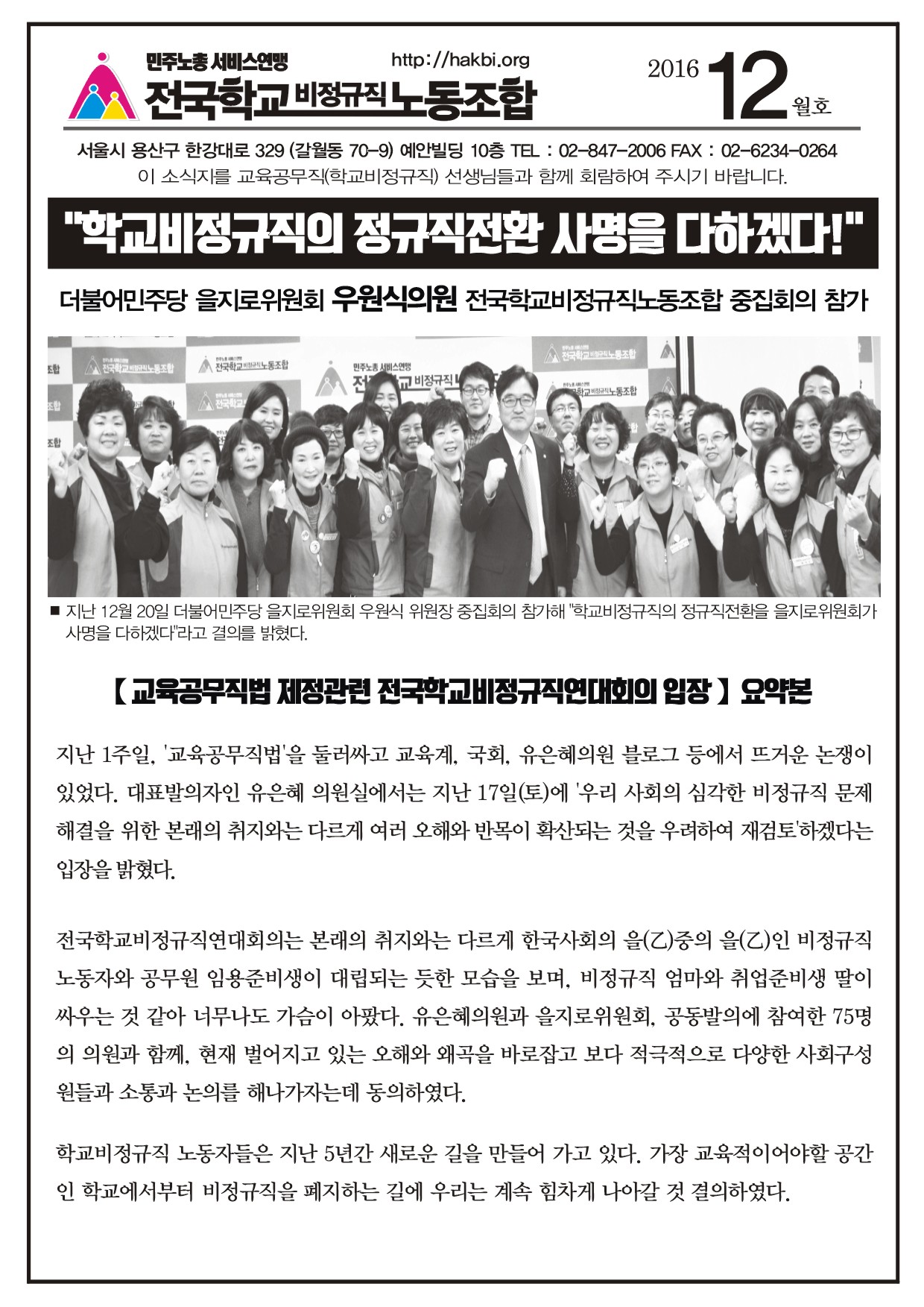 [전국학비노조] 2016년도 교육부 국립 임금협약 조인식