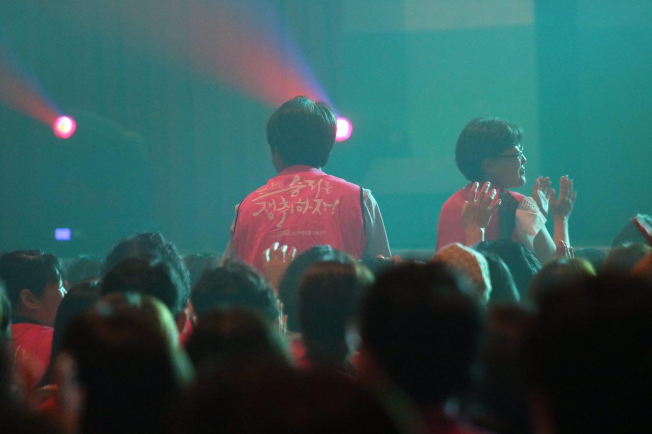 간부활동힐링/ 역사/ 통일/ 경제 인문학콘서트와 1분에 한번씩 간부들의 눈물을 쏙 뺐던 학비뮤지컬 "분홍빛인생", 지부에서 준비한 각종 공연과 중집간부들의 파격적인 댄스공연, 정년퇴임을 앞두신 표명순, 신인숙 선배님께 드리는 신임간부(이성민 대전지부장님) 눈물의 편지낭독 등의 문화마당까지 울고 웃으며 감동의 시간을 가졌습니다.