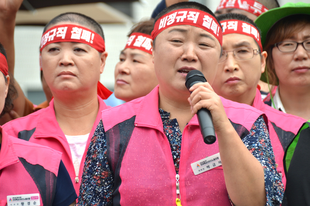 끝끝내 최저임금 꼼수부리고 노사합의 파기하는 사측에게 이전의 안(4년차 5만, 8만, 11만)보다 진전단 안을 가져올때까지 교섭단 중집의 단식투쟁 돌입 선언 기자회견을 오늘 오전에 하였습니다.
