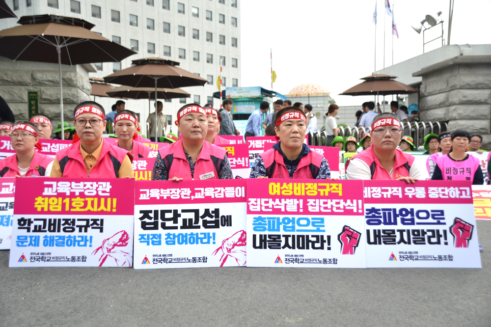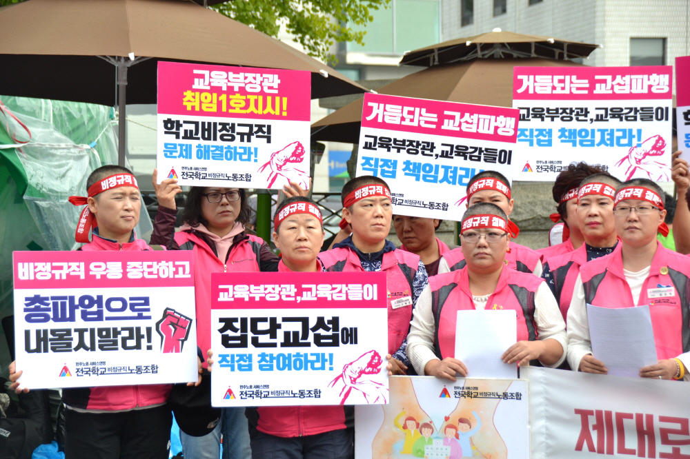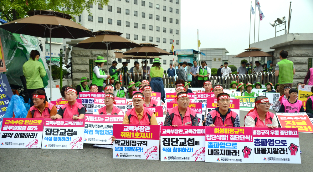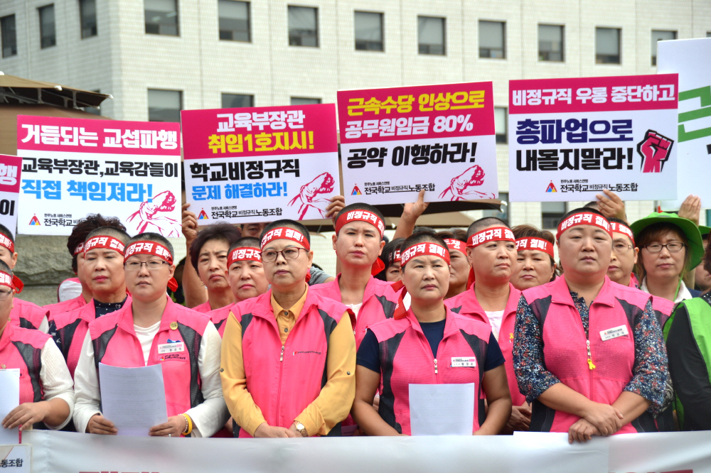 이후 학비노조는 전국동시다발 노사합의 파기 및 최저임금 무력화 교육감 규탄!