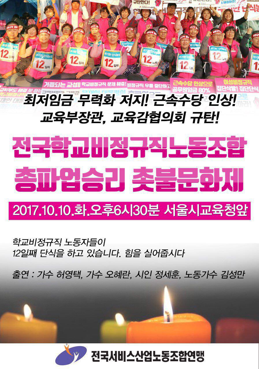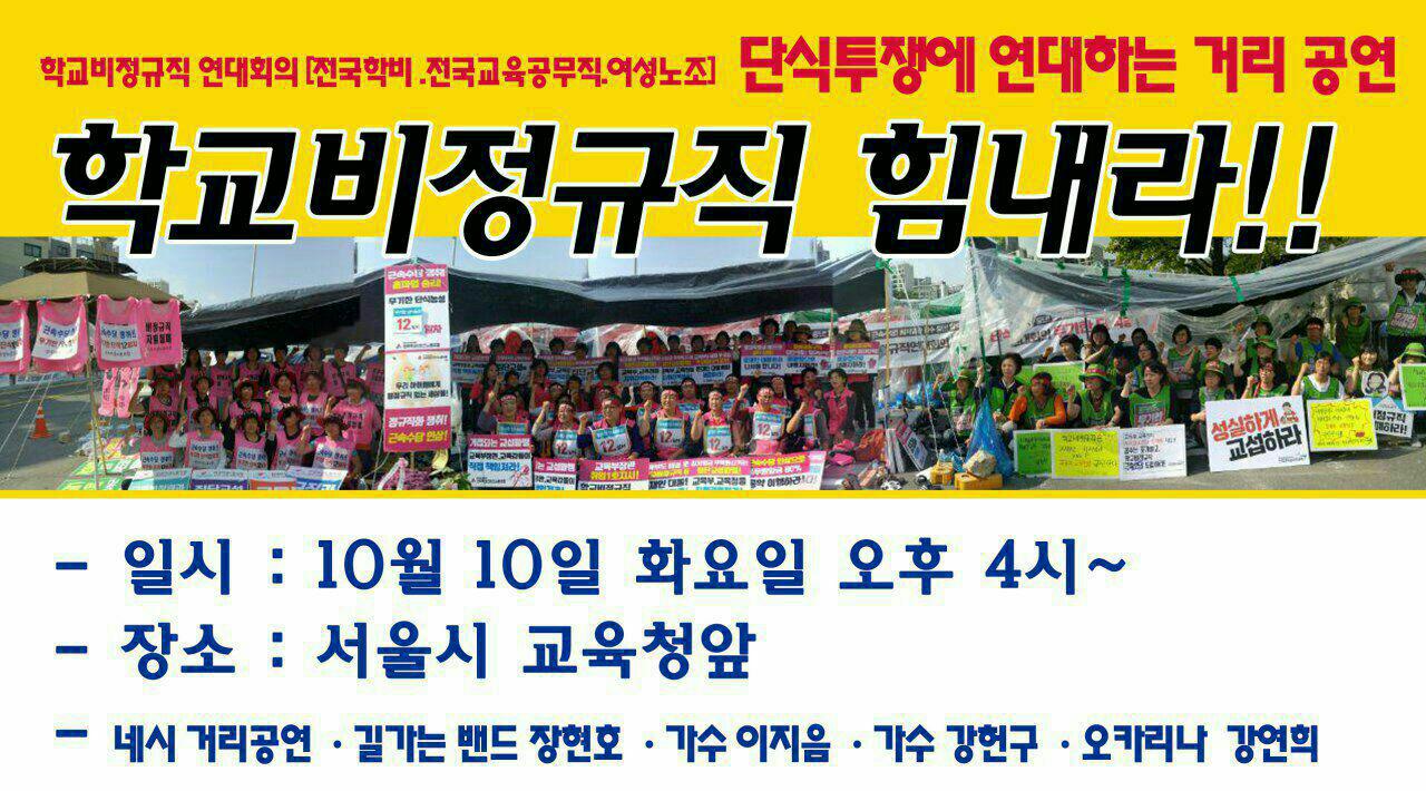 단식투쟁 연대공연 '학교비정규직 힘내라!' 10일(화) 오후 4시