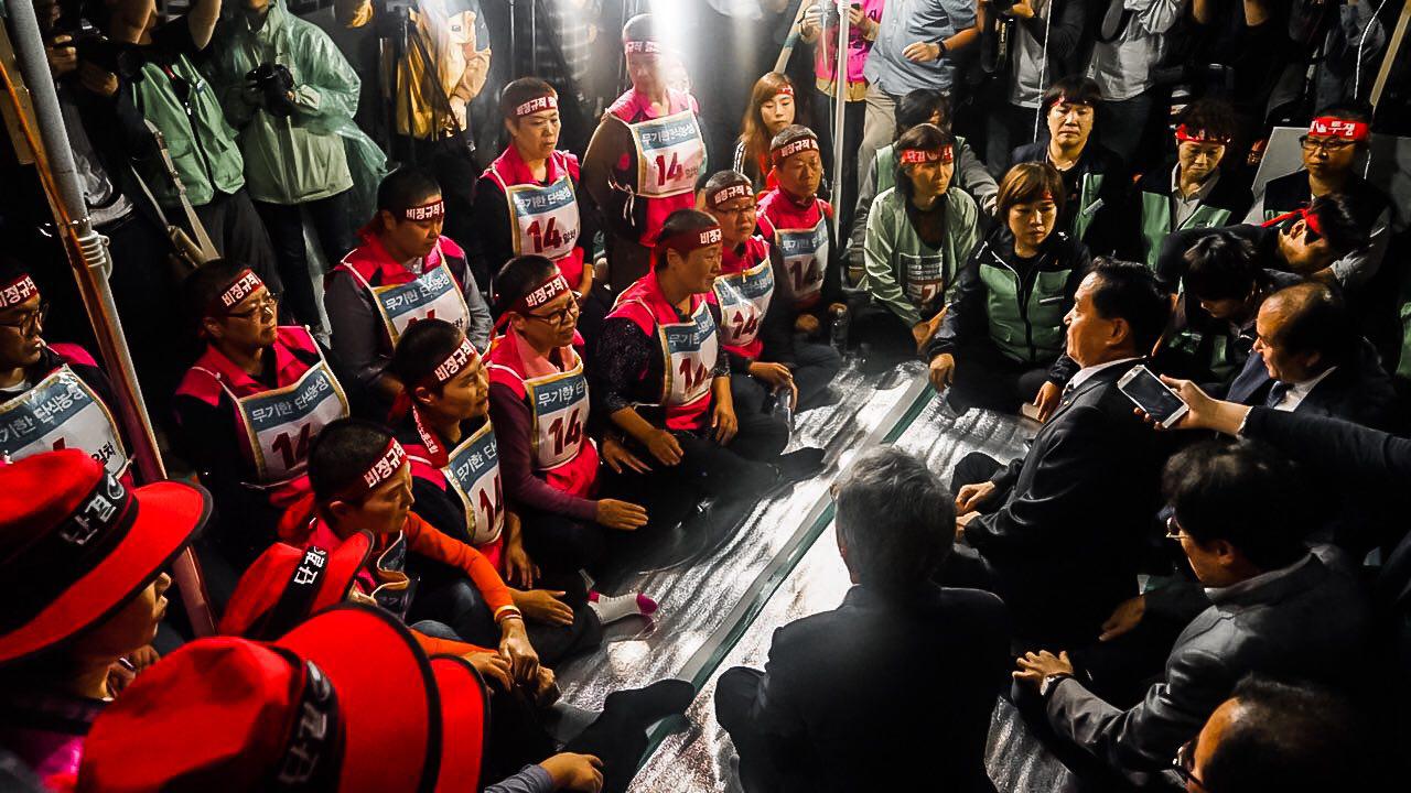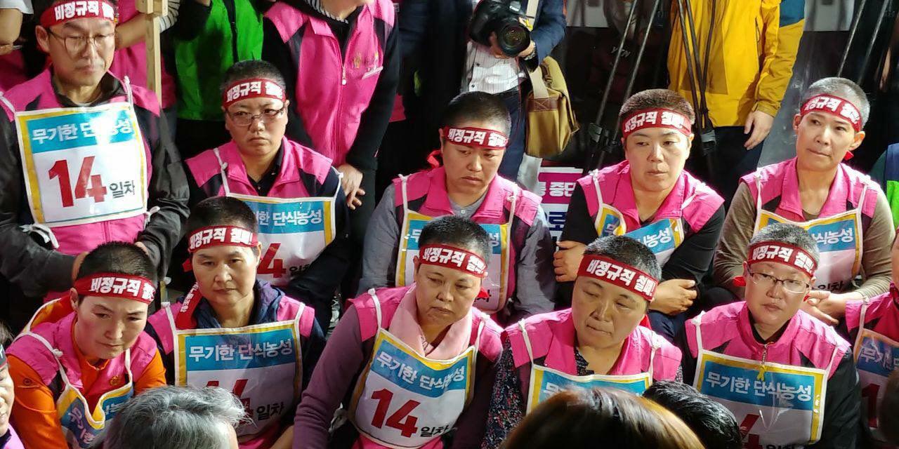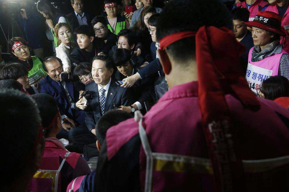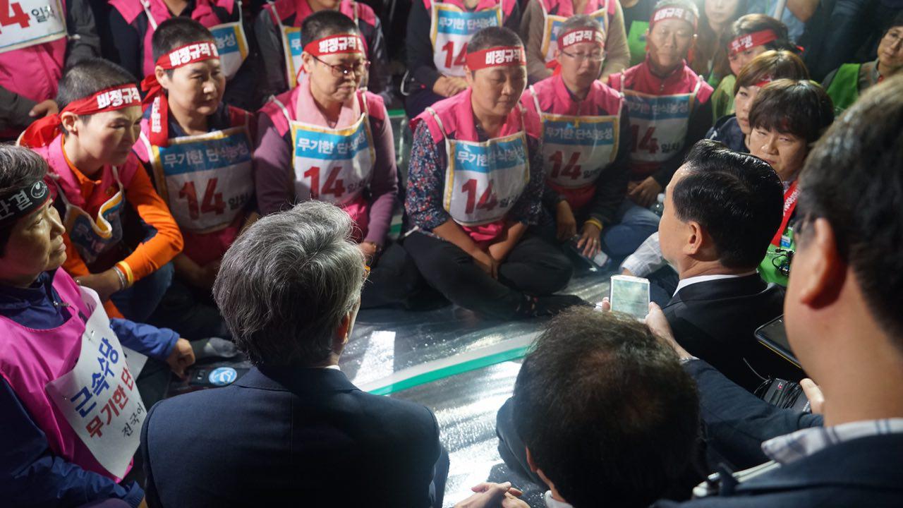 :'문재인 정부가 사람중심 경제, 노동역할 중요시하는 경제를 지향하고, 더불어 살자고 새 정부를 만들었는데 이런 상황이 벌어진 것에 대해 깊은 책임감을 느낀다.  더는 (단식농성) 하지 마시고 교섭으로 풀어나가자는 말씀을 드리고자 이 자리에 왔다