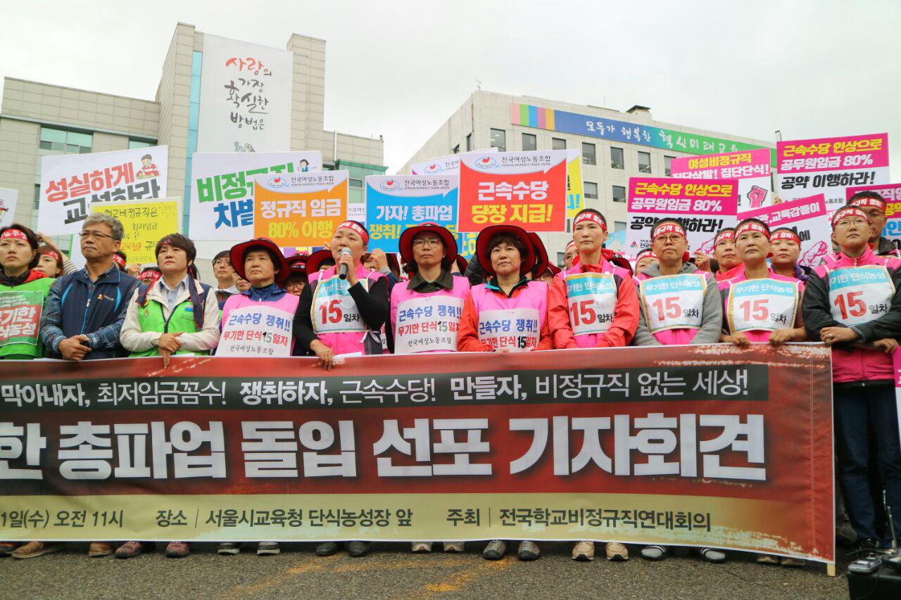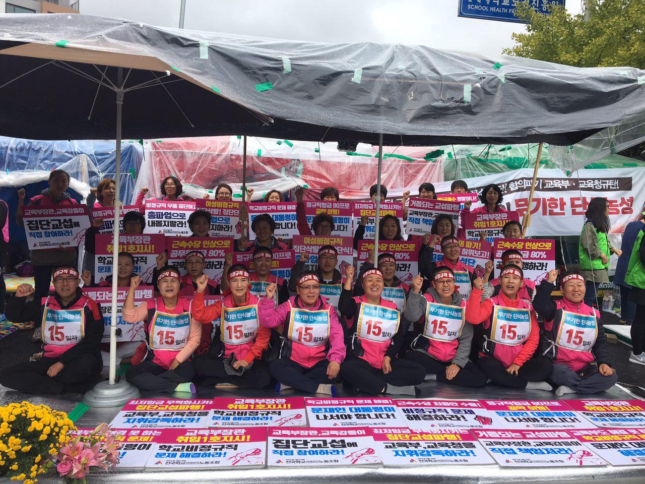 이에 노동조합 중앙집행위에서는 15일 동안 진행한 단식농성투쟁(학비노조 12명, 여성노조 7명)으로 학교비정규직 문제를 정치쟁점화하고 교육부와 교육청을 압박하여 교육부 장관, 교육감협의회 임원으로부터 진정성 있는 사과와 성실교섭을 약속받고 향후 특별 교섭구조를 내온 성과를 토대로 단식을 종료하기로 하였습니다.