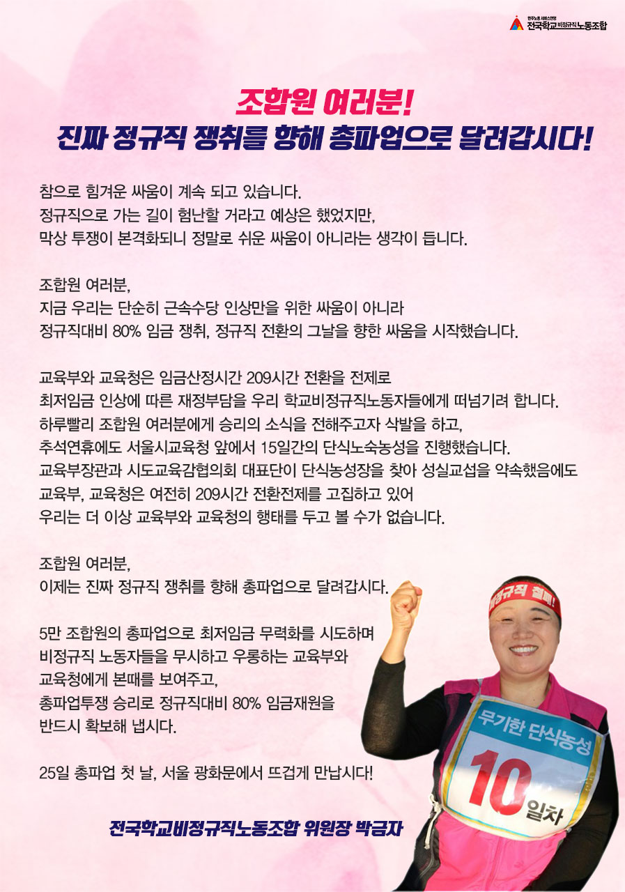 [위원장호소문] 조합원 여러분! 진짜 정규직 쟁취를 향해 총파업으로 달려갑시다!
