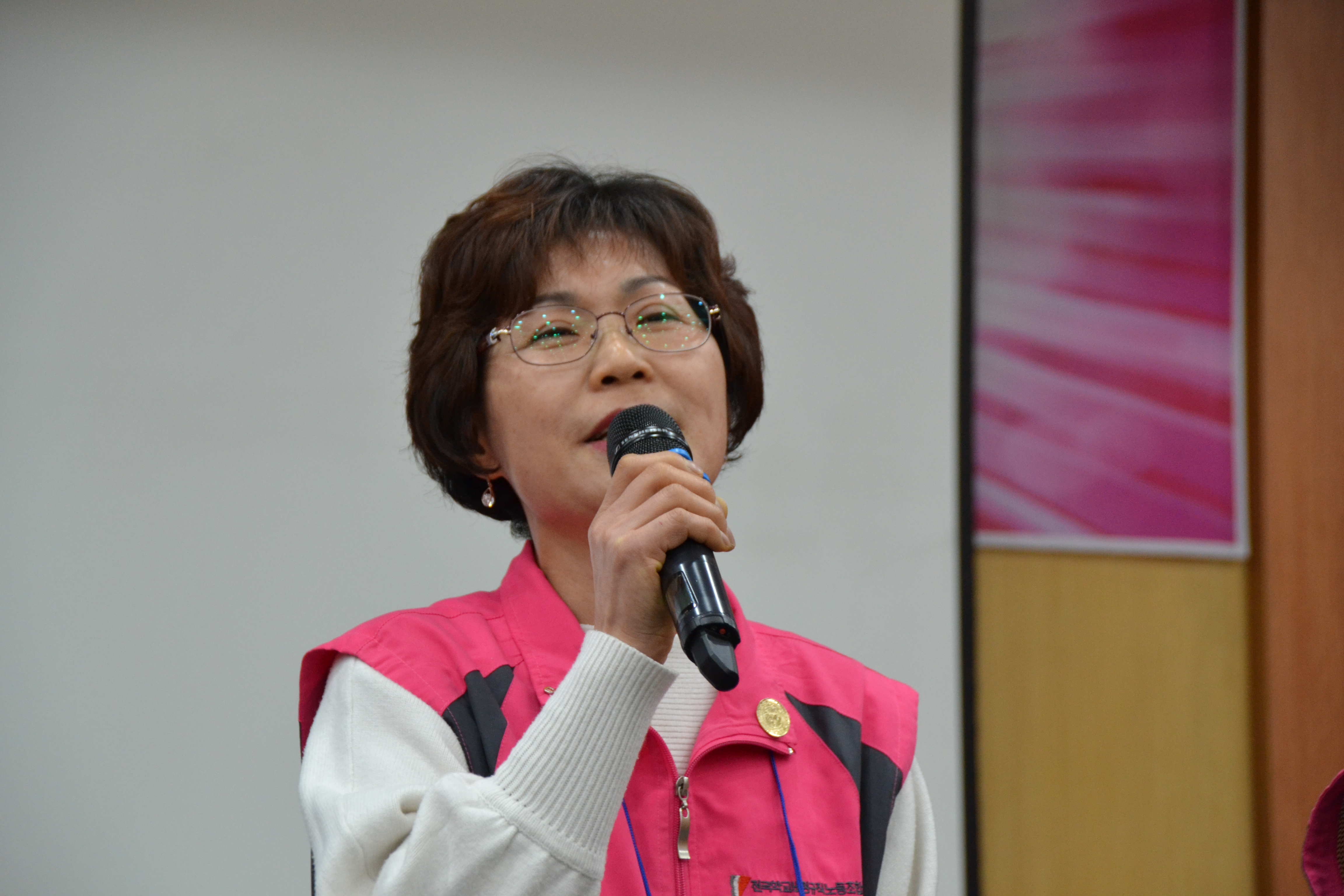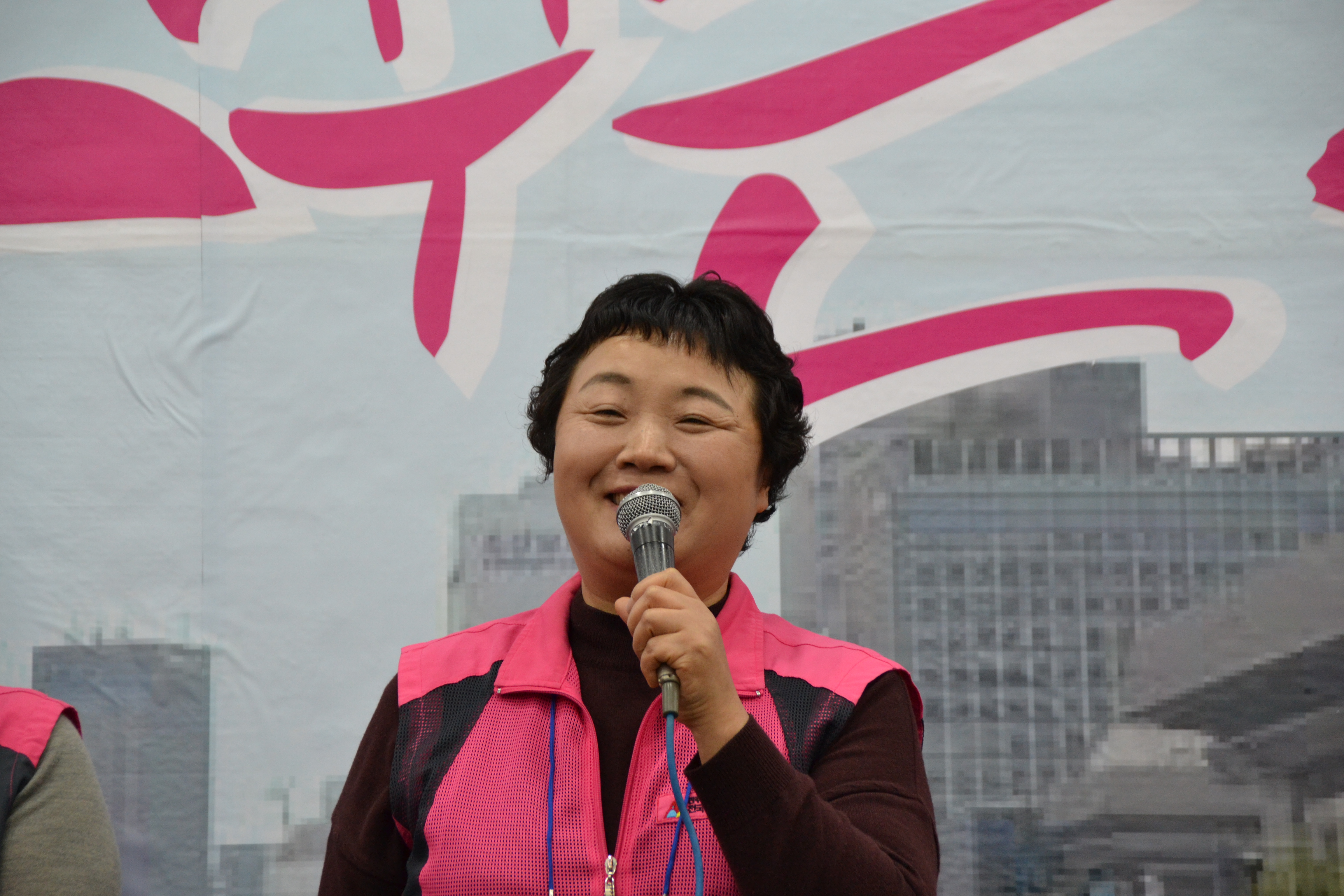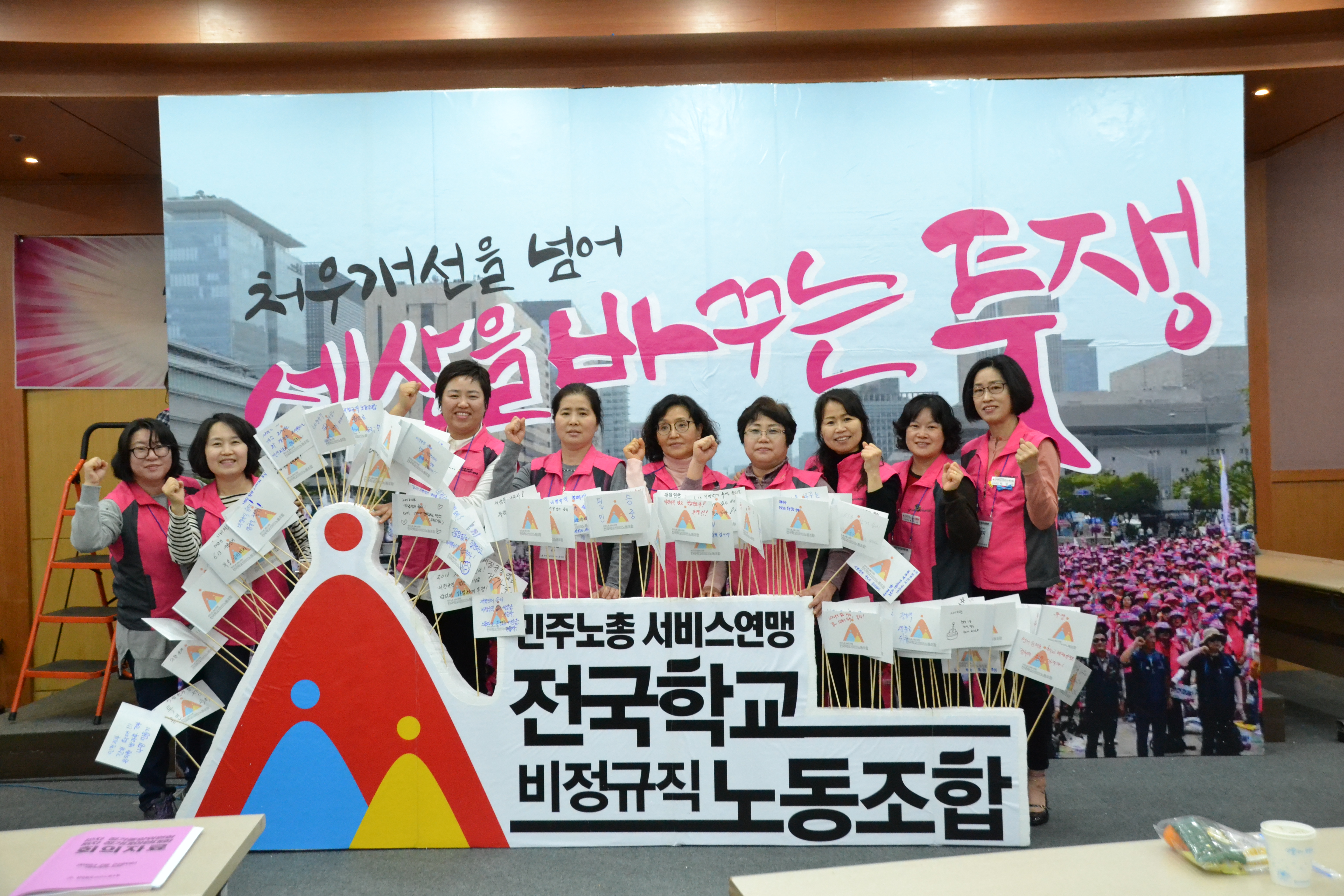 학비노조가 부수어야할 것들이 적힌 대형 벽을 부수는 퍼포먼스 후에 4기 출범식을 진행하였는데, 박금자 학비노조위원장은 “4기 임원으로 뽑아 주셔서 진심으로 감사드린다. 더 열심히 하라는 격려의 표시인 걸로 알고 2년 동안 전국학교비정규직 노동조합 성공적으로 이끌어가겠다. 613지방선거 우리의 당 민중당을 강화해야한다. 학비노조 조합원 15명이 출마했는데 당선될 수 있도록 앞장서서 최선을 다하겠다. 임금체계 개편과 정규직 법제화, 대의원 동지들과 반드시 쟁취하겠다“ 고 말했습니다.