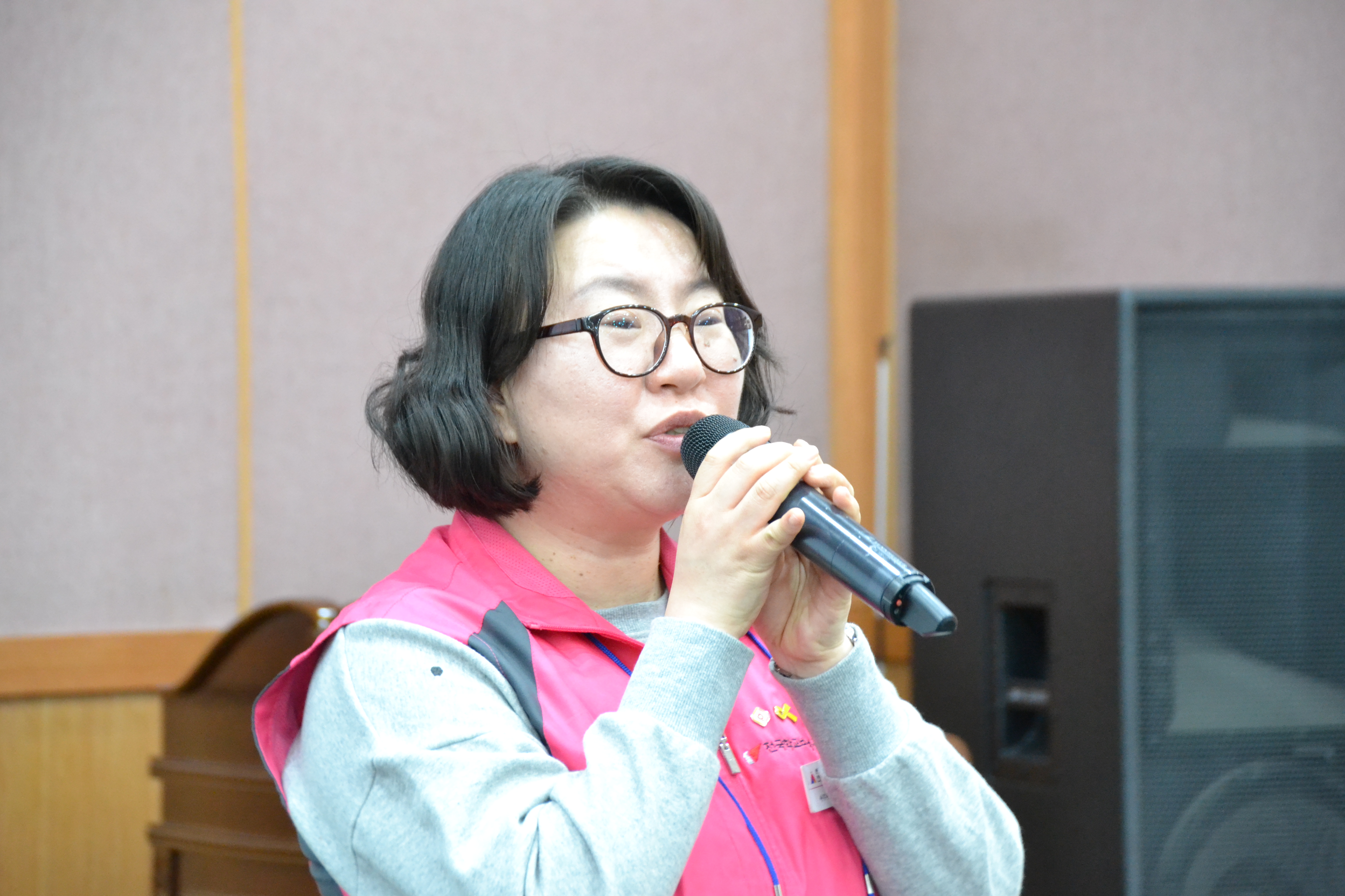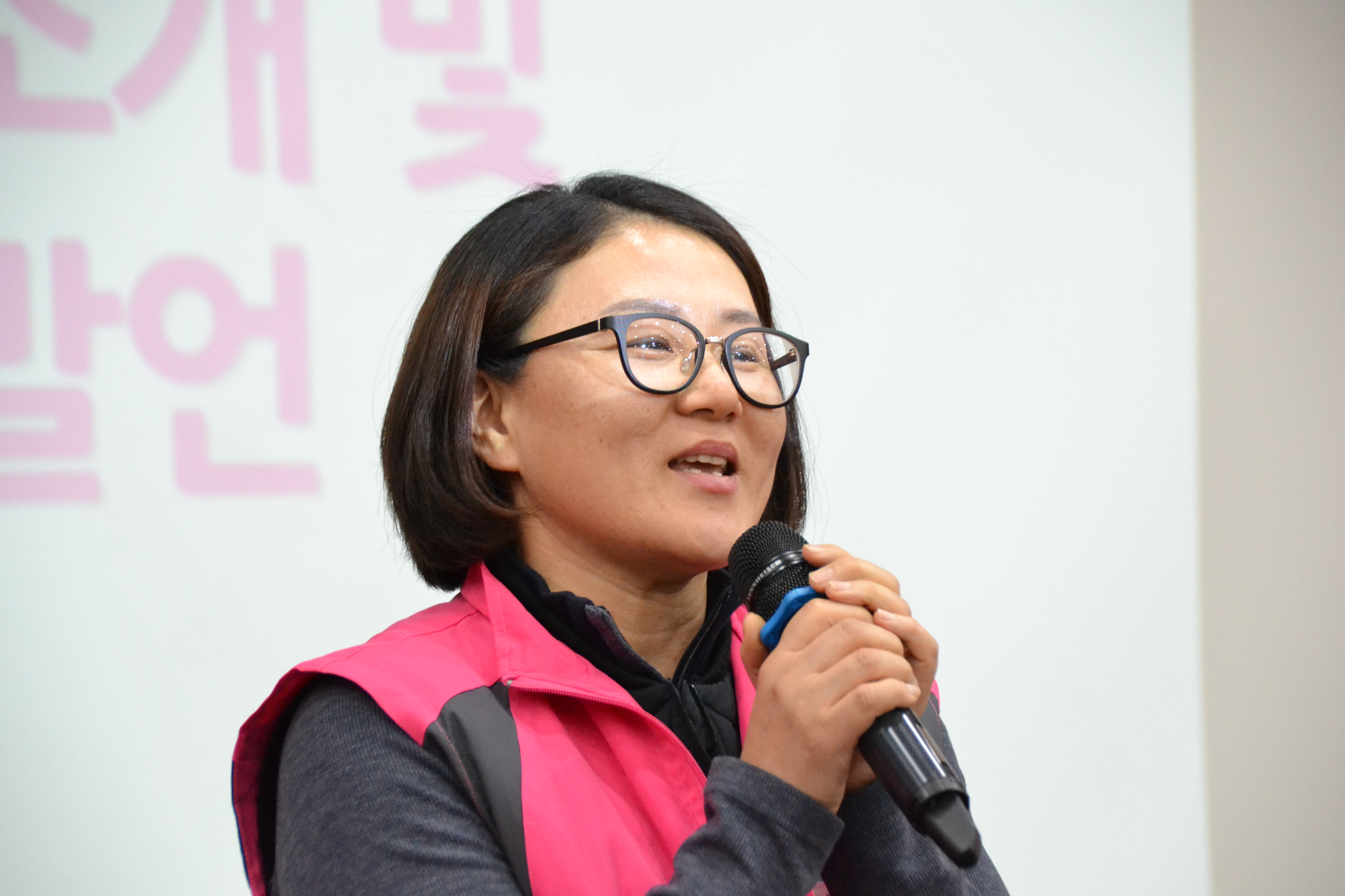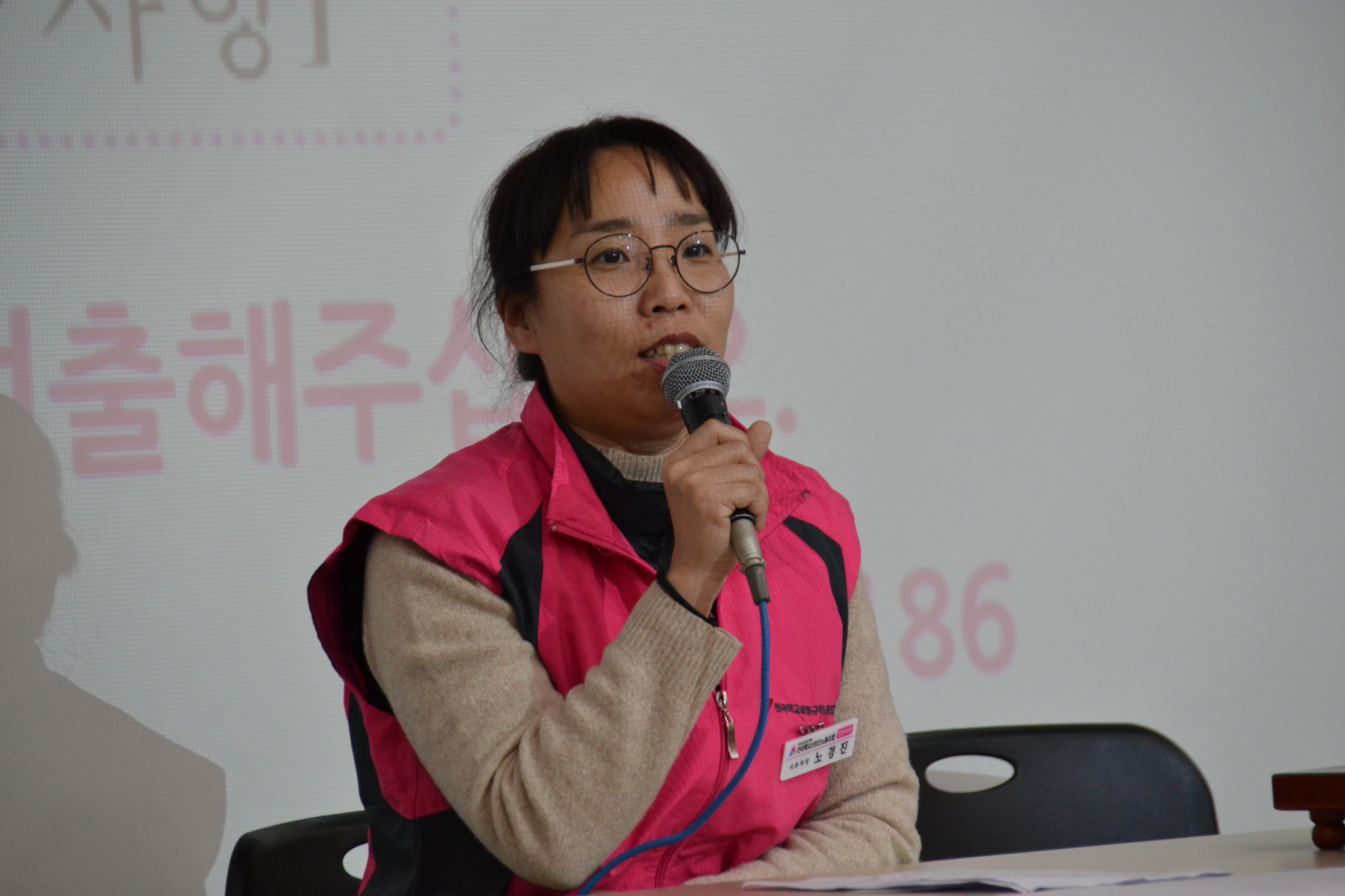 학비노조가 부수어야할 것들이 적힌 대형 벽을 부수는 퍼포먼스 후에 4기 출범식을 진행하였는데, 박금자 학비노조위원장은 “4기 임원으로 뽑아 주셔서 진심으로 감사드린다. 더 열심히 하라는 격려의 표시인 걸로 알고 2년 동안 전국학교비정규직 노동조합 성공적으로 이끌어가겠다. 613지방선거 우리의 당 민중당을 강화해야한다. 학비노조 조합원 15명이 출마했는데 당선될 수 있도록 앞장서서 최선을 다하겠다. 임금체계 개편과 정규직 법제화, 대의원 동지들과 반드시 쟁취하겠다“ 고 말했습니다.