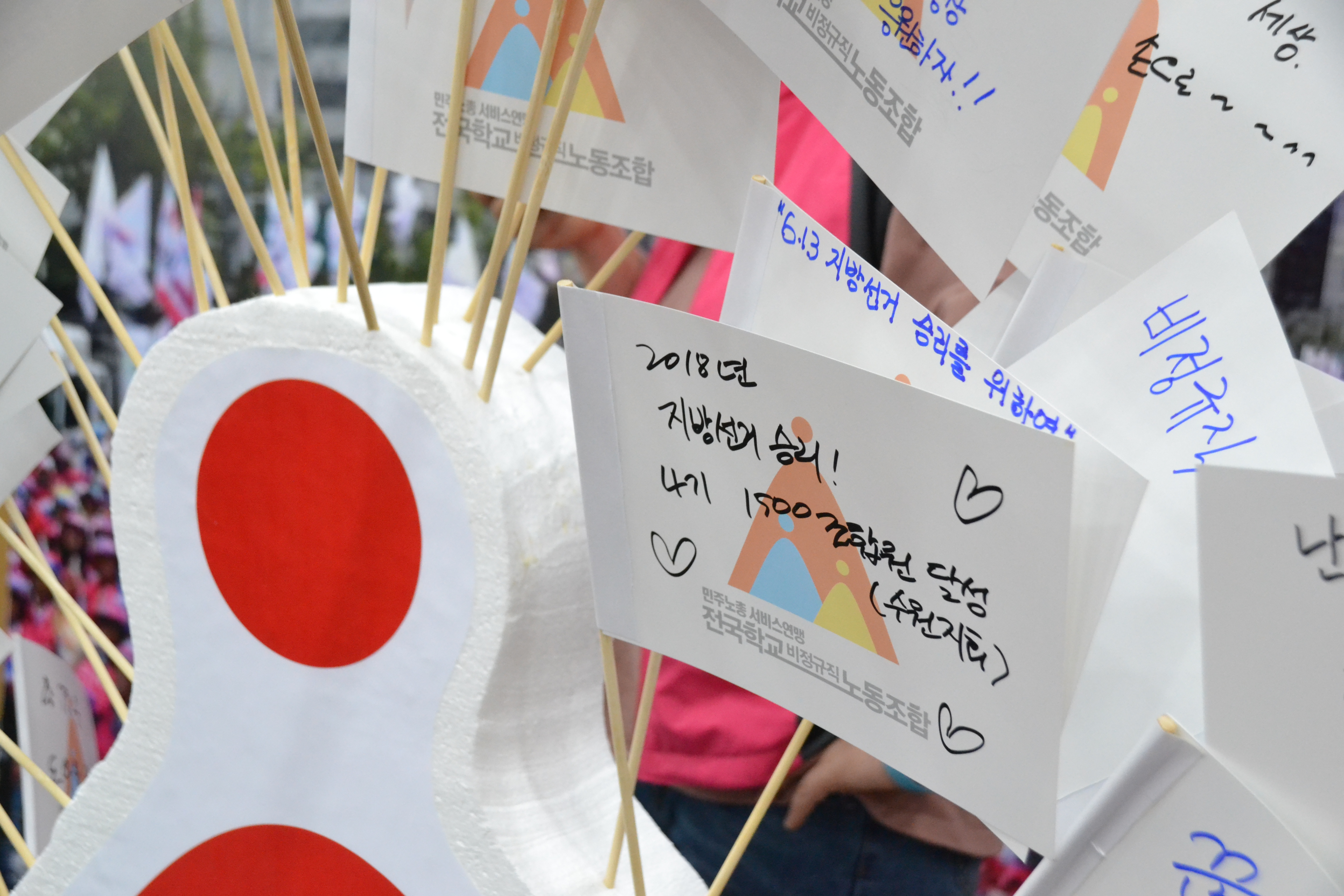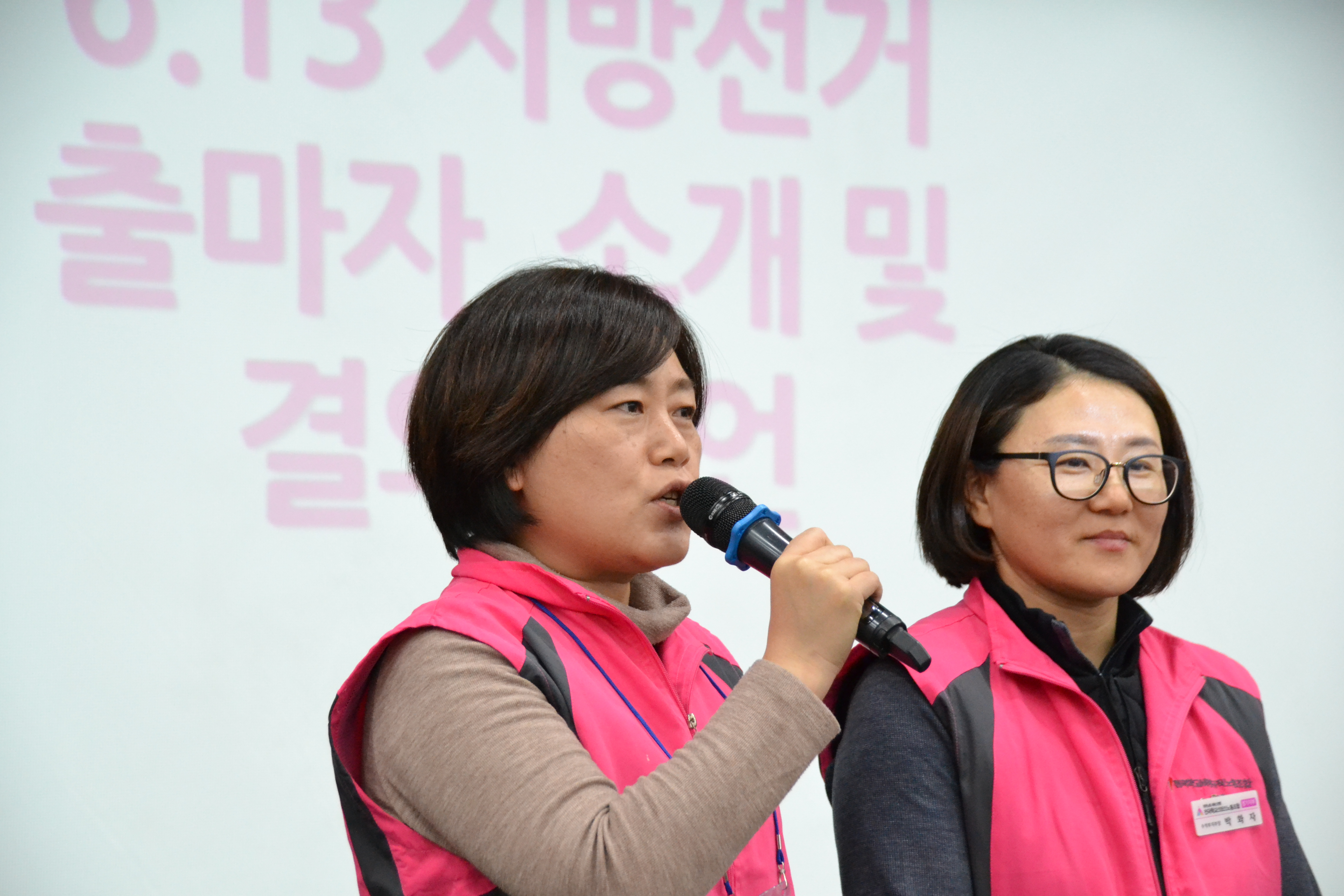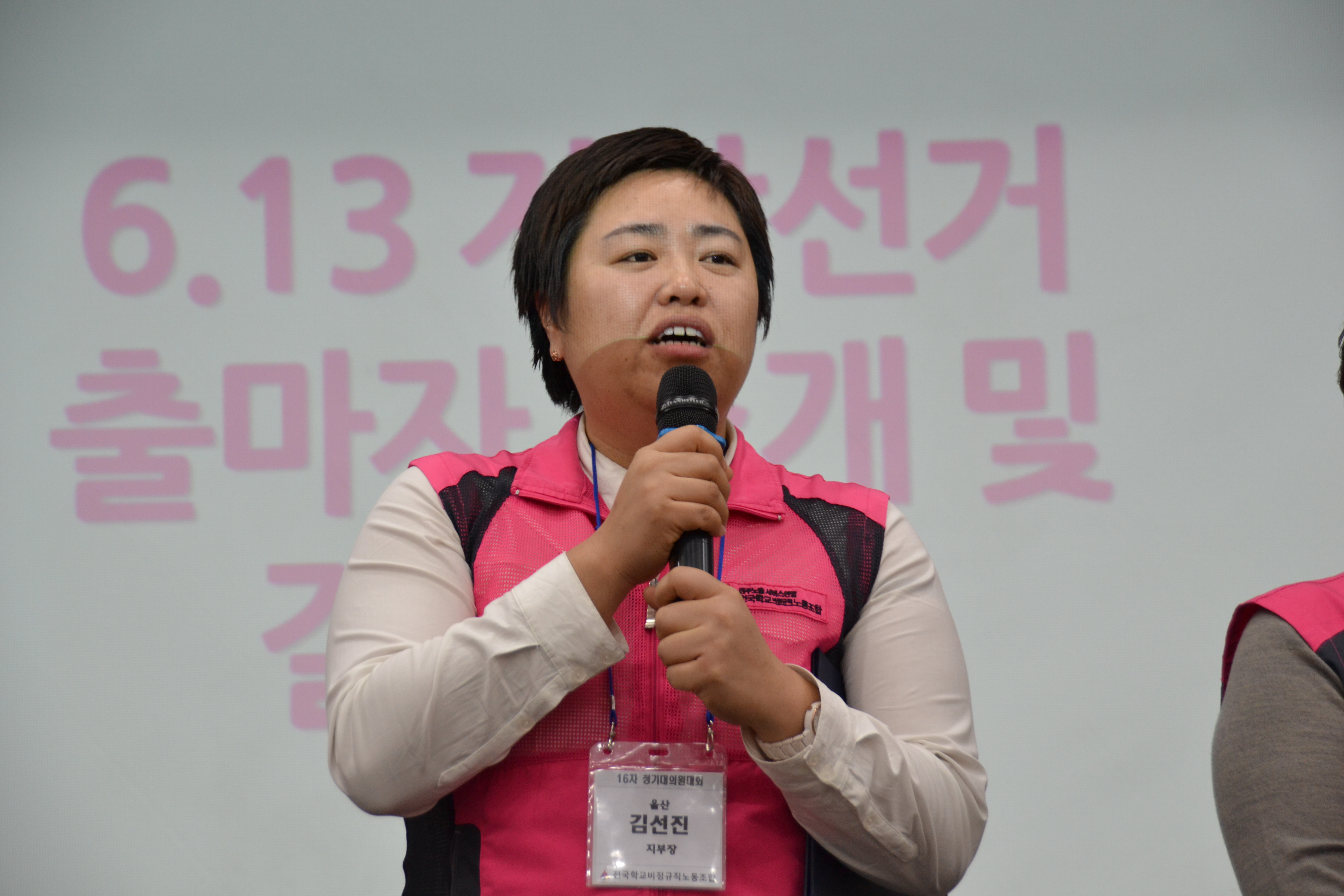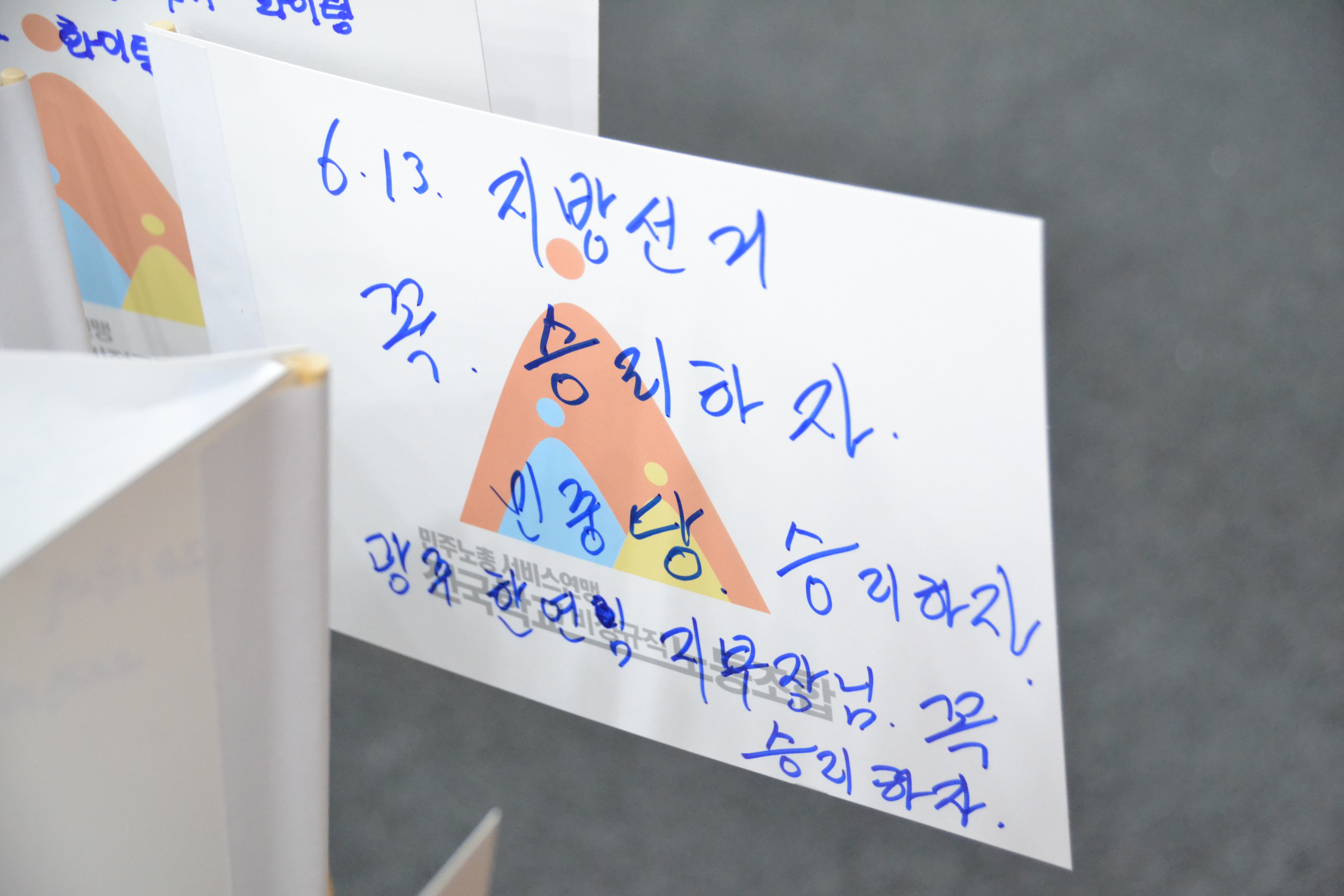 이외 민주노총 서울본부 기호2번 후보들의 선거 유세, 모범상 시상, 부위원장 선출이 힘차게 진행되었고, 주요하게는 613 지방선거에 출마한 학비노조 조합원 후보들의 결의발언도 이어졌습니다.