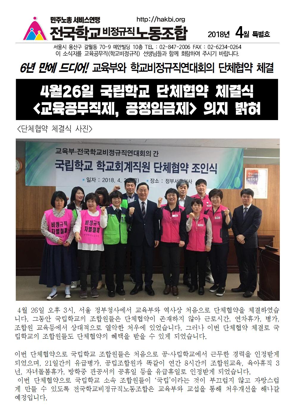 [팩스소식지 -4월 특별호]국립학교 단체협약 체결식!