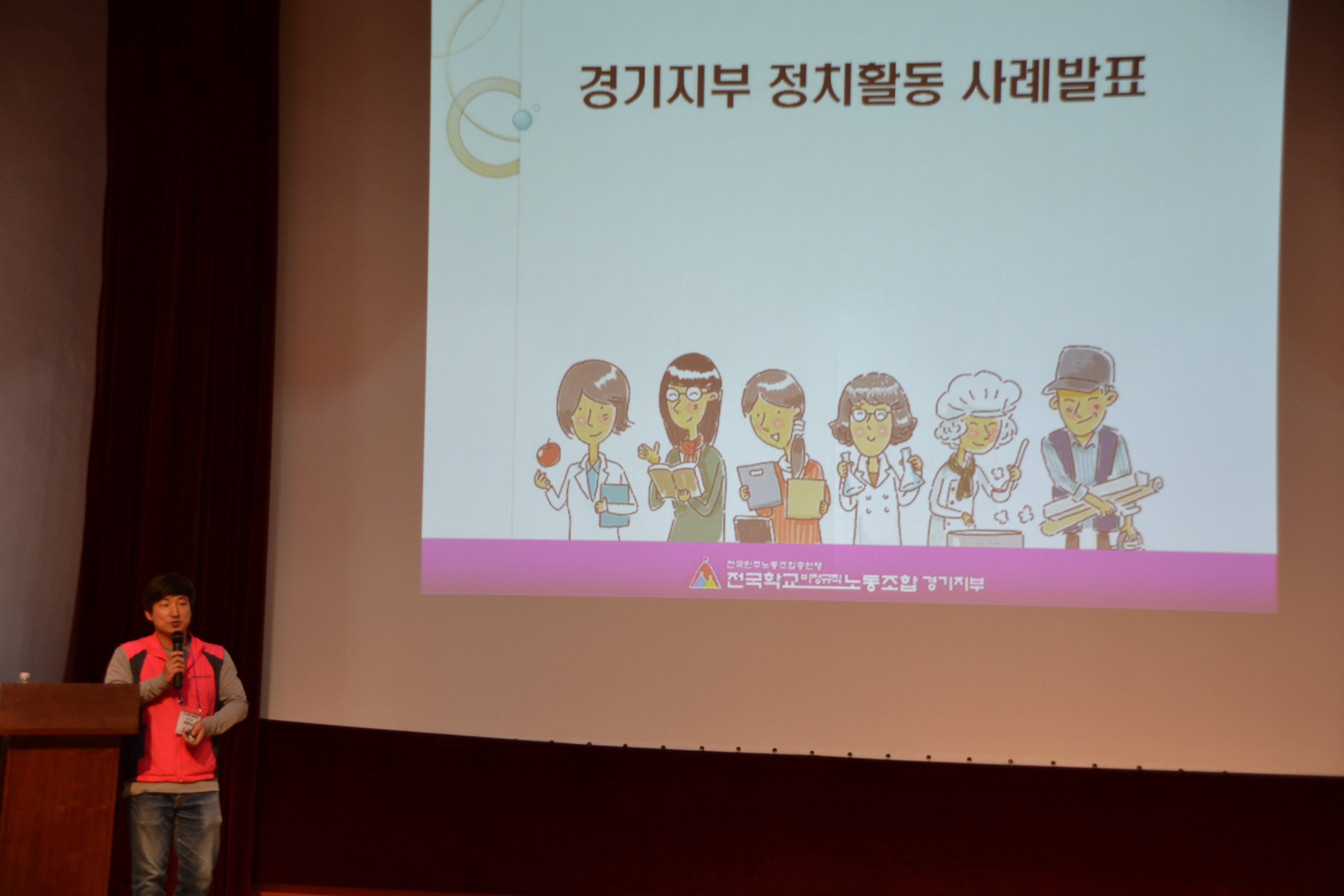 두 번째 강연은 이의엽 민중교육연구소장의 강연이 이어졌습니다. 군비로 인한 대한민국 예산구조와 함께 평화군축이 노동자, 서민의 삶의 얼마나 큰 연관관계가 있는지에 대한 강연이었고 시야를 넓히는 계기가 되었습니다. 지부 모범 사례 발표는 경기지부, 광주지부의 모범사례 발표로 이루어졌습니다.