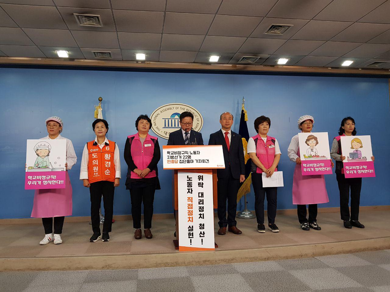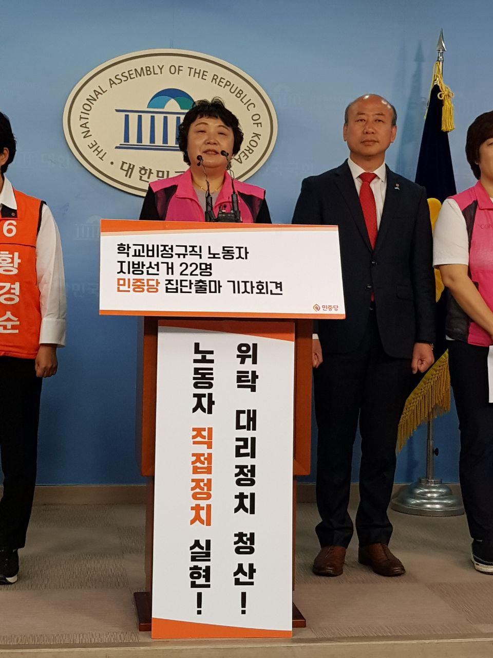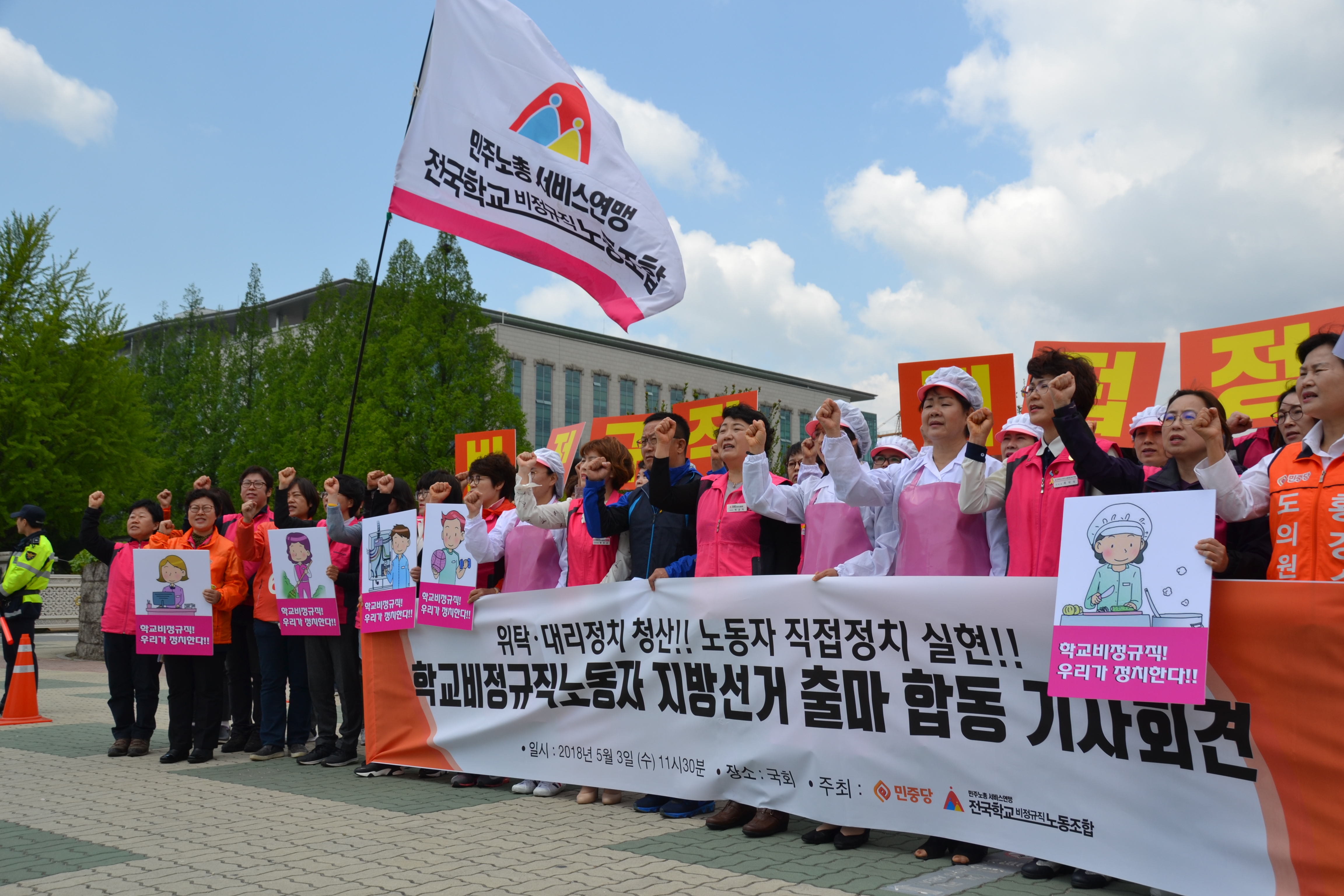 위탁·대리정치 청산! 노동자 직접정치 실현! 학교비정규직노동자 지방선거 출마 합동 기자회견